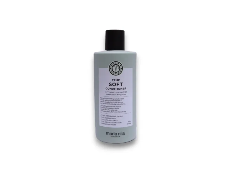 A detangling conditioner for naturally dry hair that softens, moisturises and reduces frizz and static electriticty. The softening Argan Oil, antioxidants and fatty acids preserve moisture and strengthen your hair. True Soft Conditioner has a soft scent of Vanilla, Rose and Jasmine. Colour Guard Complex preserves the colour by protecting your hair from UV radiation and free radicals.