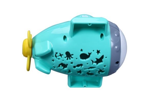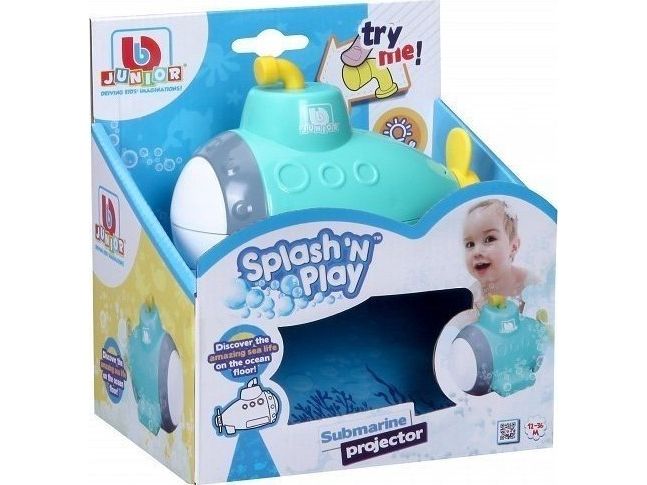 Undersøk den magiske verdenen under vann med Splash'N'Play ubåtprosjektoren! Trykk på periskopet og la lyskjeglen lyse opp det utrolige livet på havbunnen. Ubåten og prosjektoren er vanntette. Bruker 3 AG13-batterier. Fra 12-36 måneder.