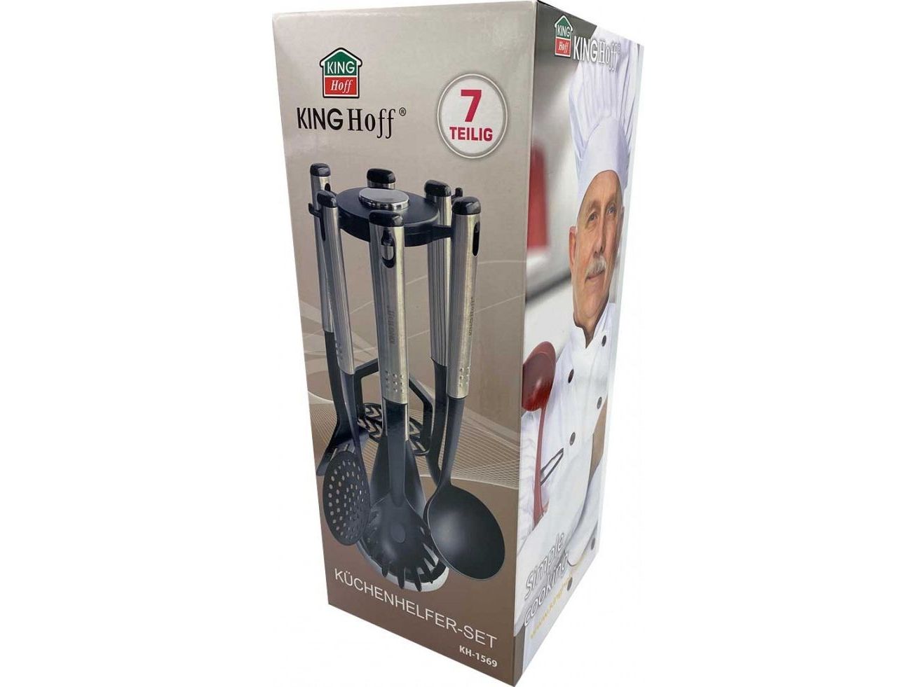 Kinghoff KH 1569 sett: 7 deler sil med riller/innsats, bolle, skje, spaghetti-server
