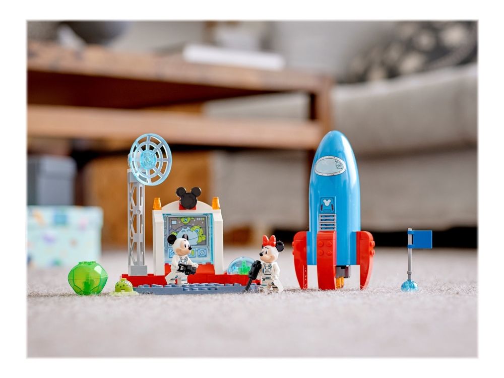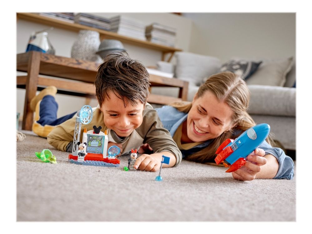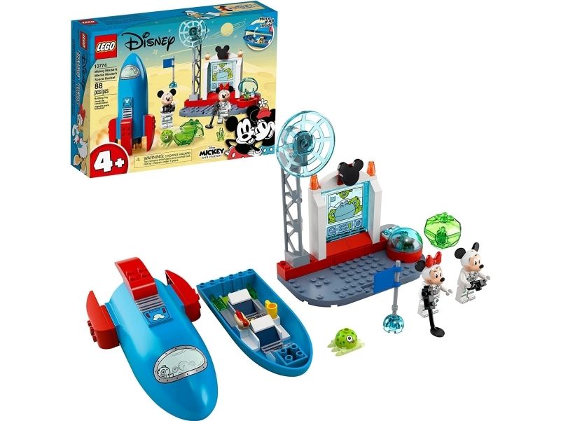 1. LEGO® ǀ Disney Mickey Romraketten til Minni Mus og Mikke Mus (10774) styrker barns byggeferdigheter og byr på utallige rollespill-muligheter, hvor de utforsker verdensrommet i en romrakett.
