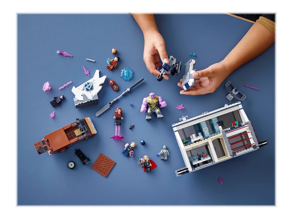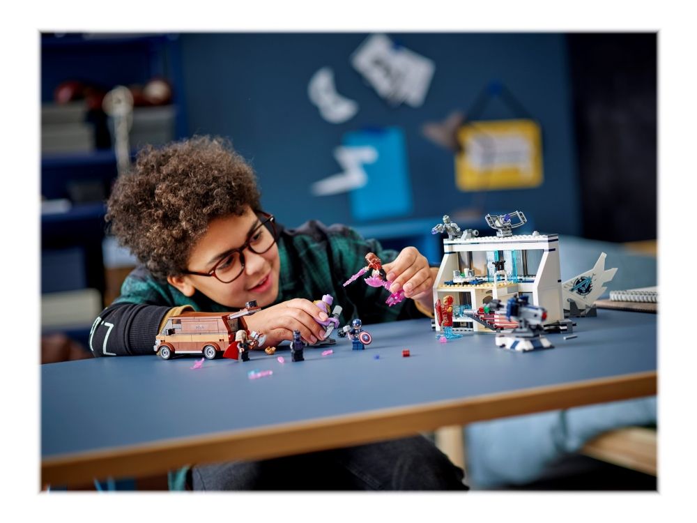Det ultimate Marvel Avengers-lekesettet Barn får et stjernespekket lag av LEGO Marvel figurer – Thor, Captain America, Black Panther, Iron Man, Scarlet Witch, Ant-Man, Thanos og en Chitauri-kriger – og kan iscenesette utallige superhelteventyr i Avengers’ hovedkvarter. Settet er stappfullt av funksjoner som inspirerer til fantasifull lek, inkludert Iron Mans labb, hvor han bygger den spektakulære Nano-hansken, et oppholdsområde hvor superheltene kan samles, en fangecelle og en varebil som kan åpnes, slik at en tidsmaskin kommer til syne.