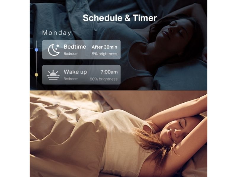 Create regular schedules and count plans to turn on/off with the brightness you set. Sunrise and sunset modes allow the light to activate automatically according to your time zone.