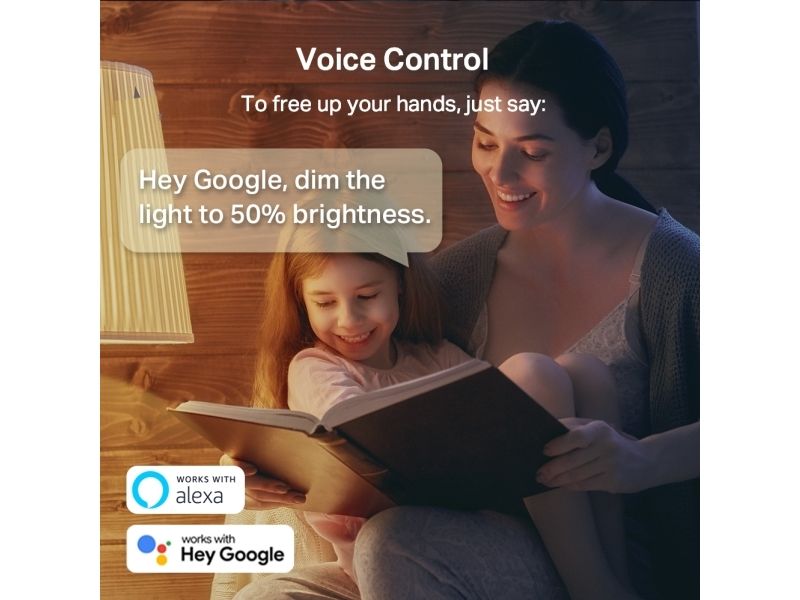 Works with Amazon Alexa and Google Assistant to free up your hands. Just say “Alexa, turn on the light” or “Hey Google, dim my bedroom lights.”
