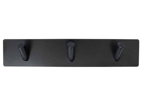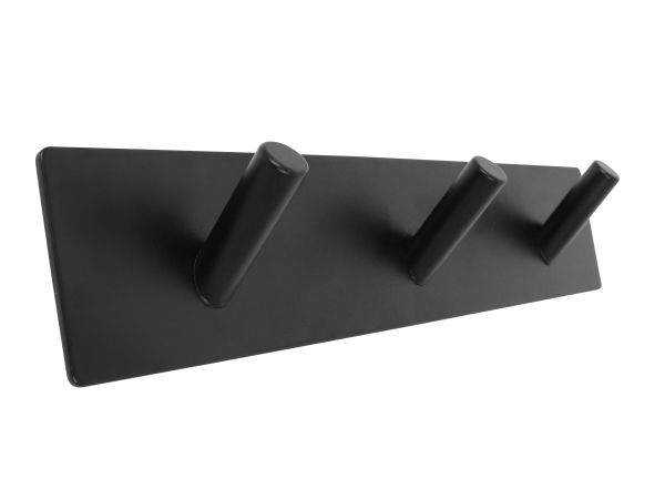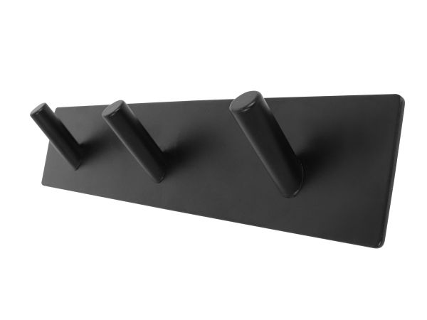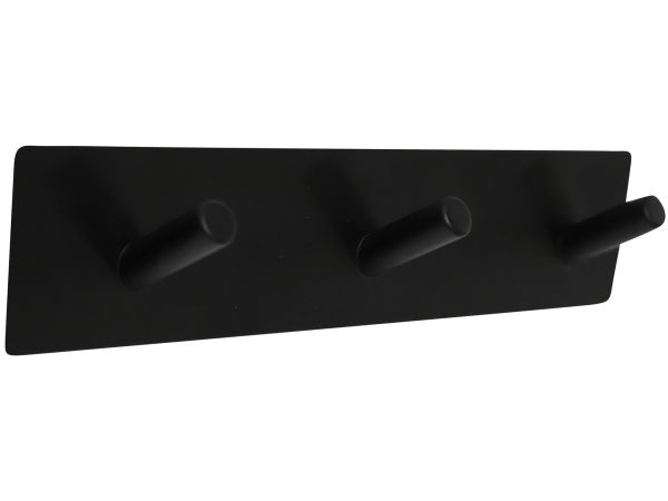 HOME It® selvklæbende knagerække med 3 kroge i rustfrit stål 20 x 4 cm matsort