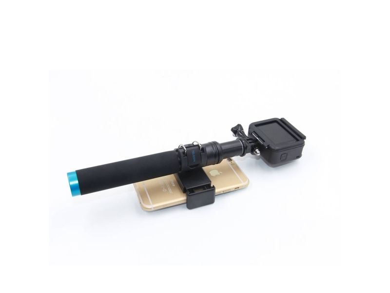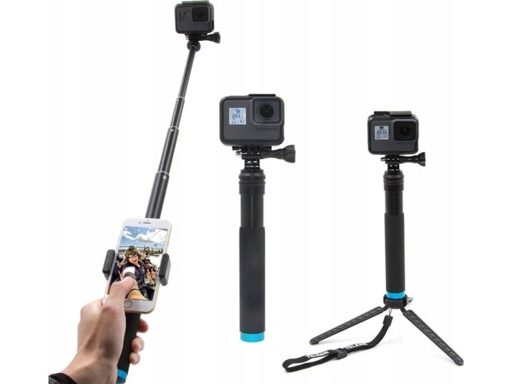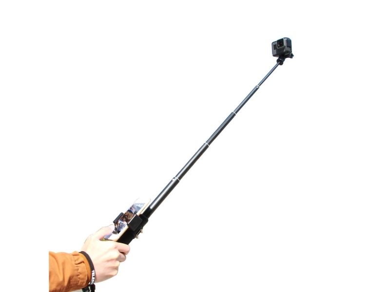 The selfie stick is compatible with many different devices. You will successfully use it in combination with sports cameras, such as GoPro, DJI Osmo Action or Xiaomi Yi, etc. In the set you will also find an additional phone holder, which allows stable mounting of smartphones with a diagonal of 3.5-6″. It is equipped with special pads that protect your devices from scratches and falling.