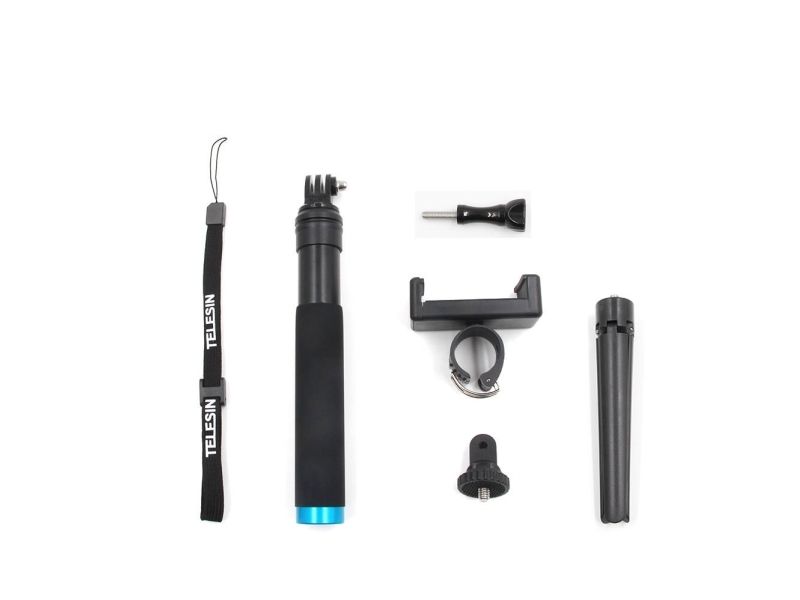 Telesin adjustable length aluminum alloy selfie stick gives you even more options for recording with your sports camera or phone. The non-slip grip makes it extremely comfortable to use. It also stands out for its considerable durability and is incredibly compact when folded. The included tripod allows you to use this practical accessory also as a tripod.