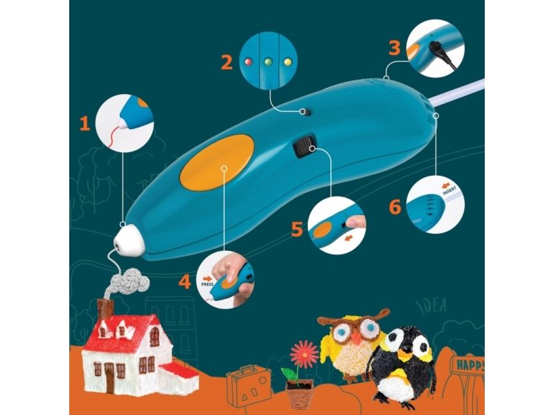 3Doodler Start-pennen er ekstremt enkel å bruke. For å starte kreativ lek er det bare å sette den valgte fargen på ECO-innsatsen i guiden, og etter en stund kan barnet ditt begynne å lage. Den eneste begrensningen er din egen oppfinnsomhet.