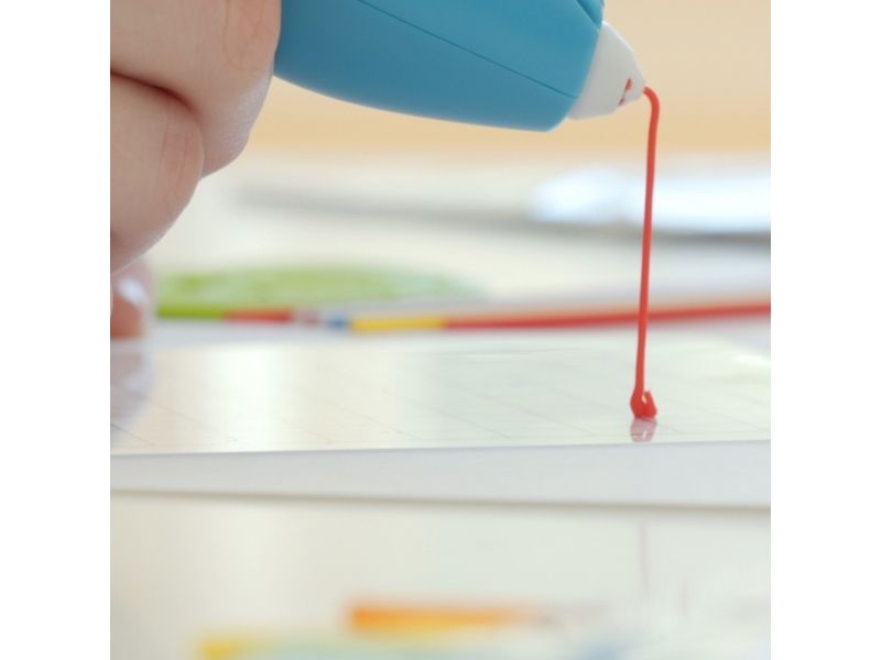 - Plasten som kommer ut av 3Doodler Start + er varm, men ikke varm. Derfor, etter at innsatsen glir ut, kan barnet trygt forme det med hendene.