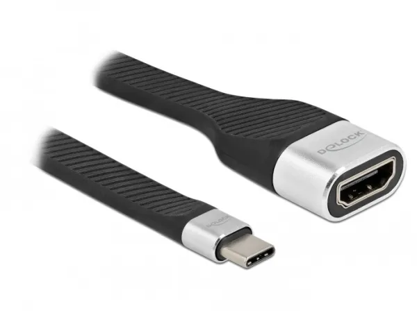 This cable by Delock enables the connection of an HDMI monitor to a PC or laptop with USB-C or Thunderbolt 3 port, such as a MacBook or a Chromebook. The interface has to support the DisplayPort Alternate Mode.