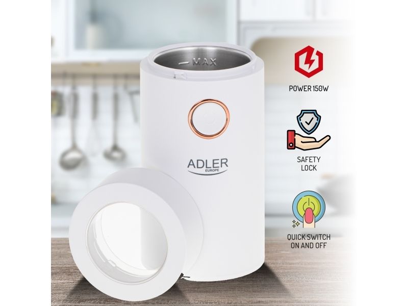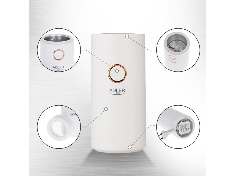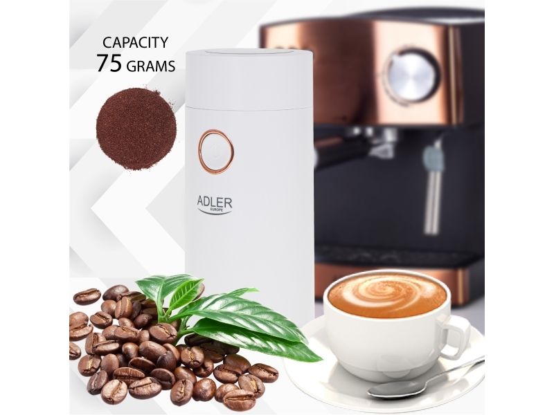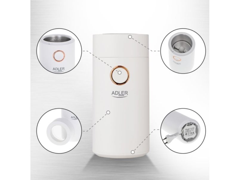 Adler AD4446WG, Kantkvern, 75 g, Rustfritt stål, Hvit, 150 W, 220-240 V