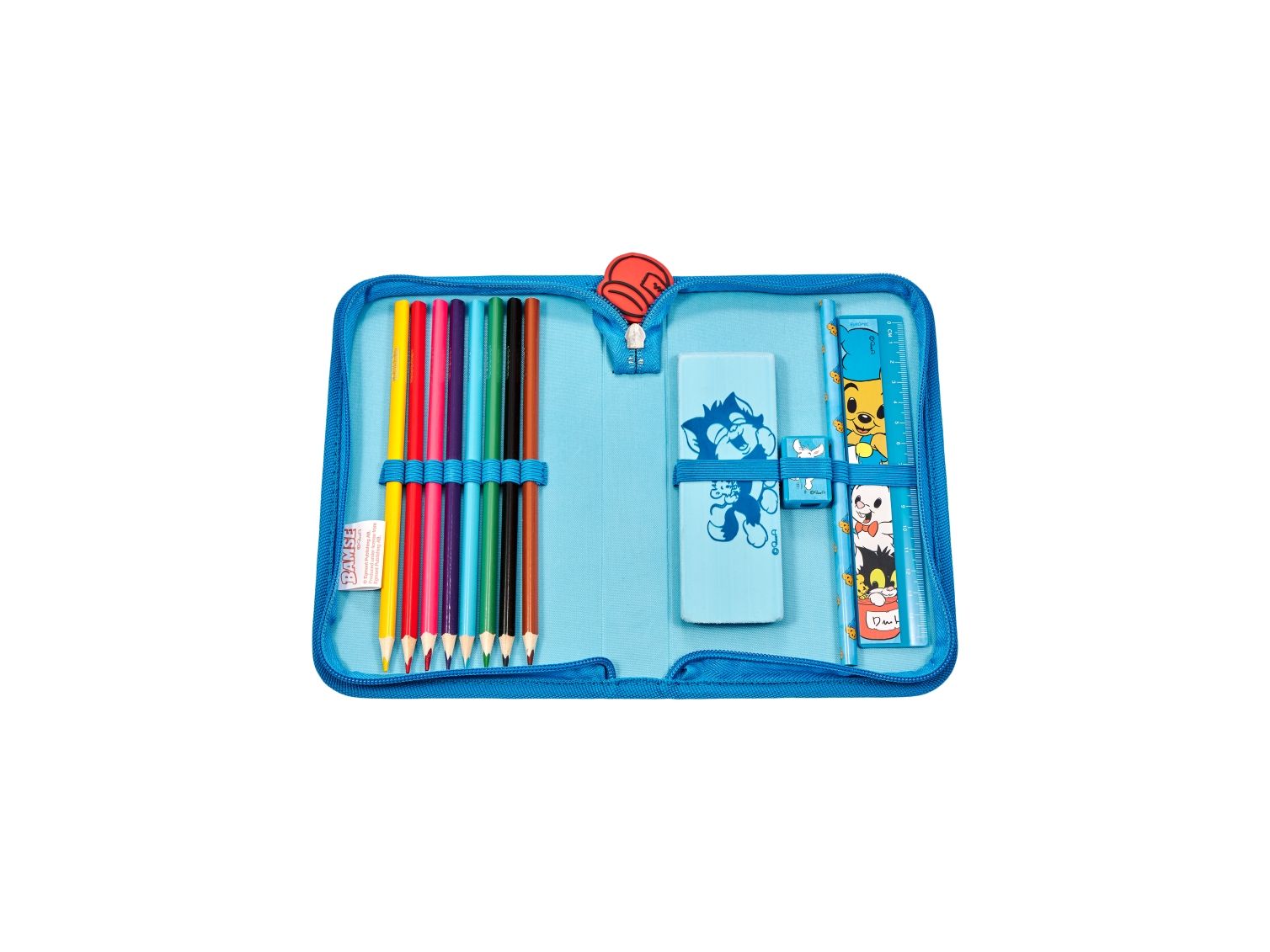 Giv dit barn en farverig og praktisk oplevelse med BAMSEs fyldte penalhus! Dette smarte penalhus i slidstærk 300D nylon rummer alt, hvad der skal til for at gøre skoledagen sjovere. Med 8 trekantede farveblyanter, en trekantet blyant, en skarp blyantspidser, en 15 cm lineal og en stor viskelæder, er det perfekt til kreative sjæle. Alt sammen pakket i en praktisk polybag, klar til at tage med på eventyr!
