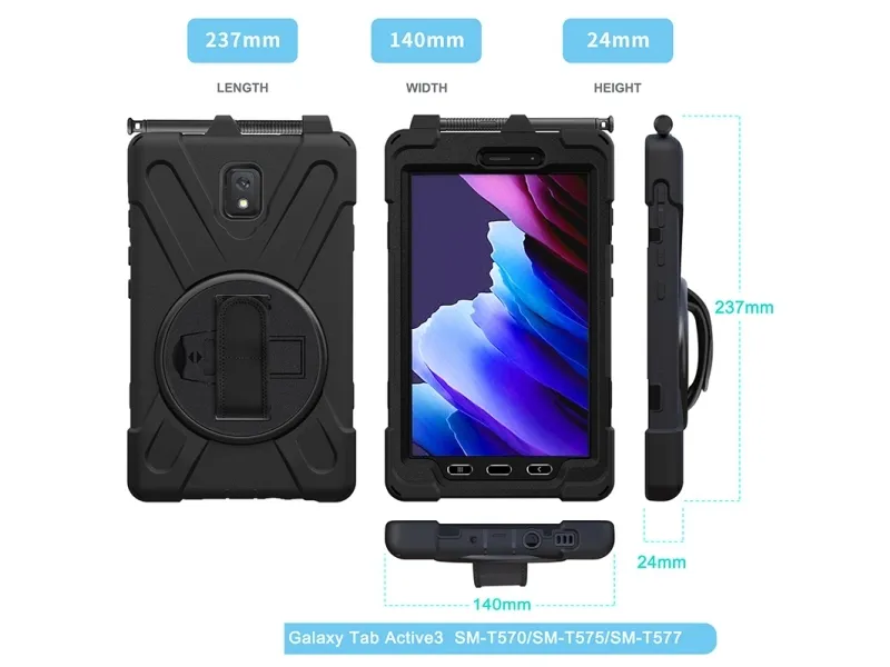 Shockproof cover designed for every day use. It is equipped with a pencil slot as well as a hand strap for a firm grip. Furthermore, it is delivered with a shoulder strap should you wish to carry the tablet in an easy way.