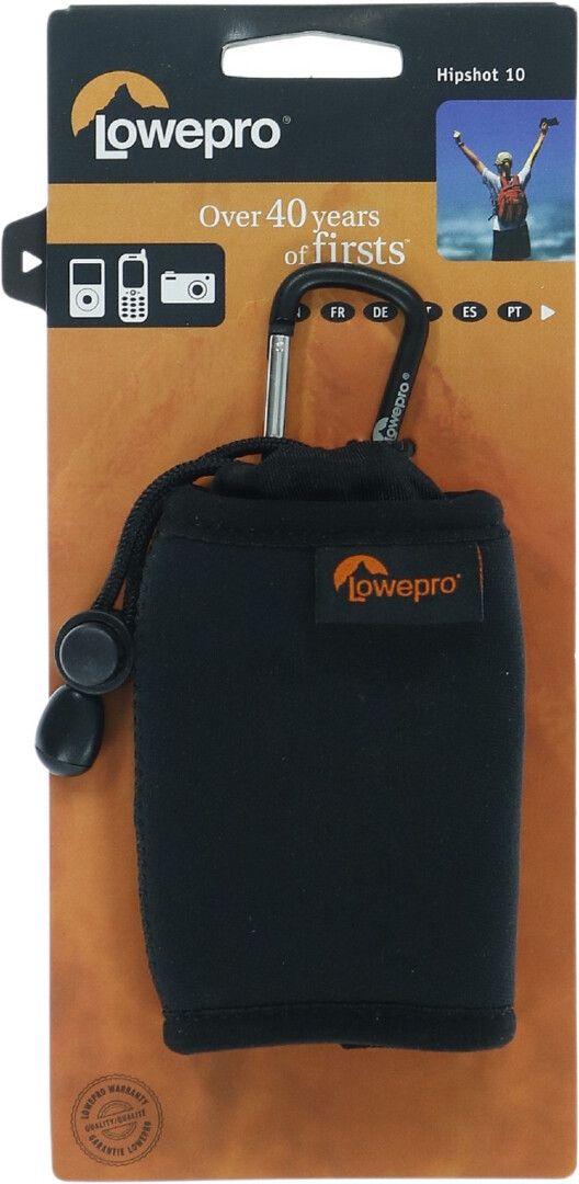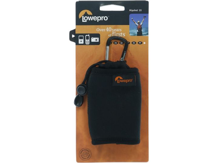 It takes design inspiration from a rock climber's chalk bag. It gets its protective, convenient features from being a Lowepro pouch. The Hipshot 10 is built to be ultra-convenient to toss in a bag, tote, briefcase or suitcase. Made of stretchy neoprene to fit and protect today's bestselling compact cameras, MP3 players, ultra-compact point-and-shoot video cameras and smartphones. Access and secure quickly with a handy drawstring and toggle closure. Clip on to a loop or strap with the built-in carabiner.