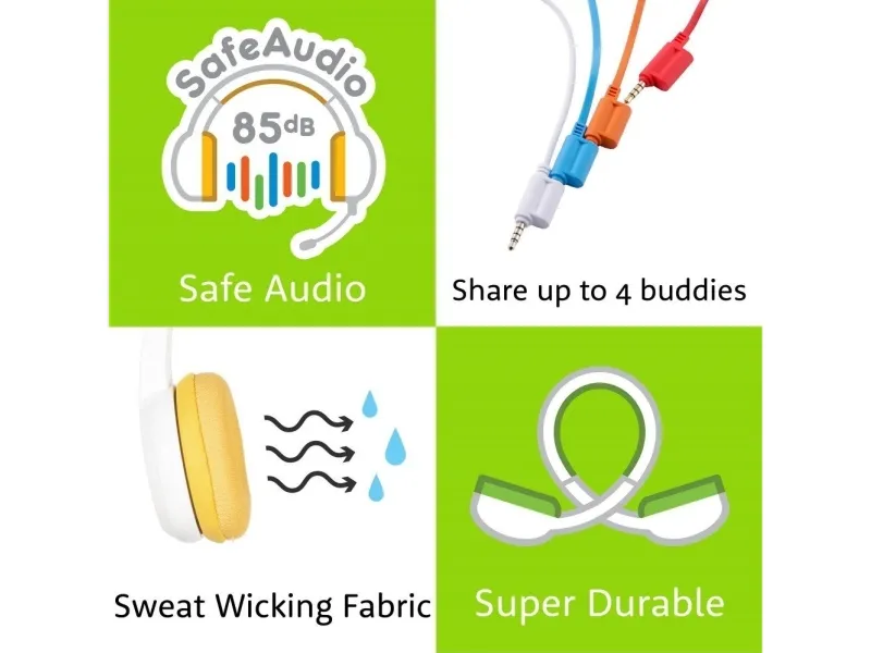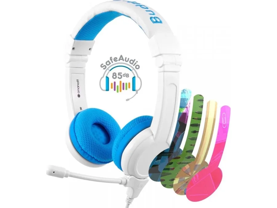 Buddyhones School+ is the easy choice for parents whose children use headphones in educational settings. Volume-limiting circuitry caps loudness at the World Health Organization’s recommended 85dB safe level while a high-quality beam mic picks up the child’s voice clearly and minimizes distracting background noise.