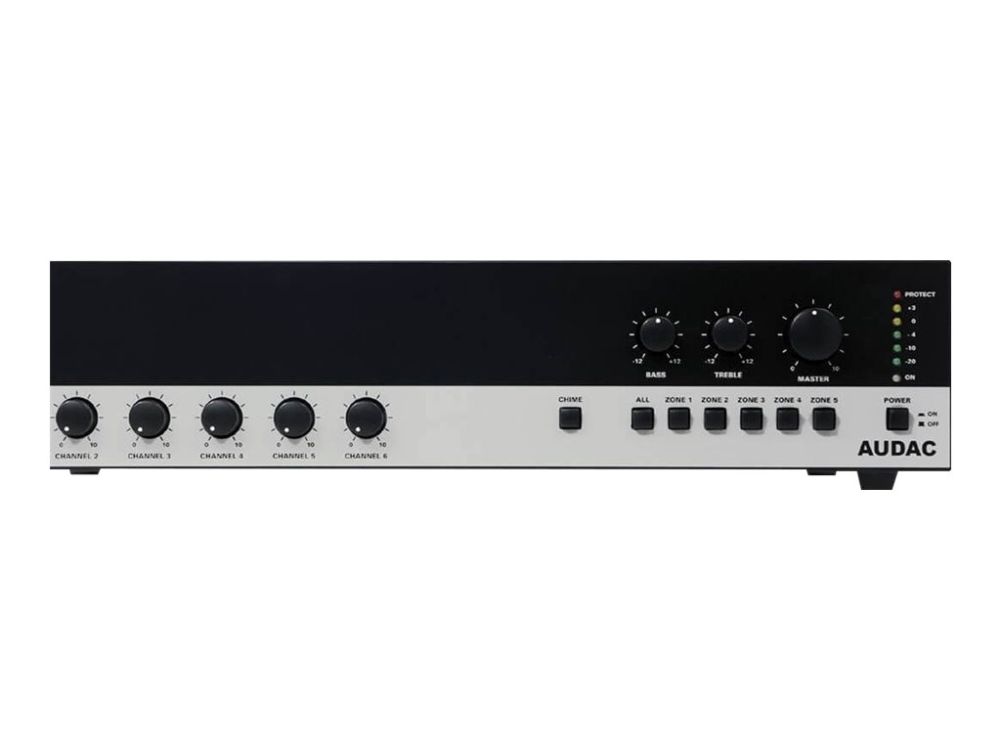 Audac COM24 - Mikserforsterker - med strømforsyning - 6-kanals - 240 watt - kan monteres i rack