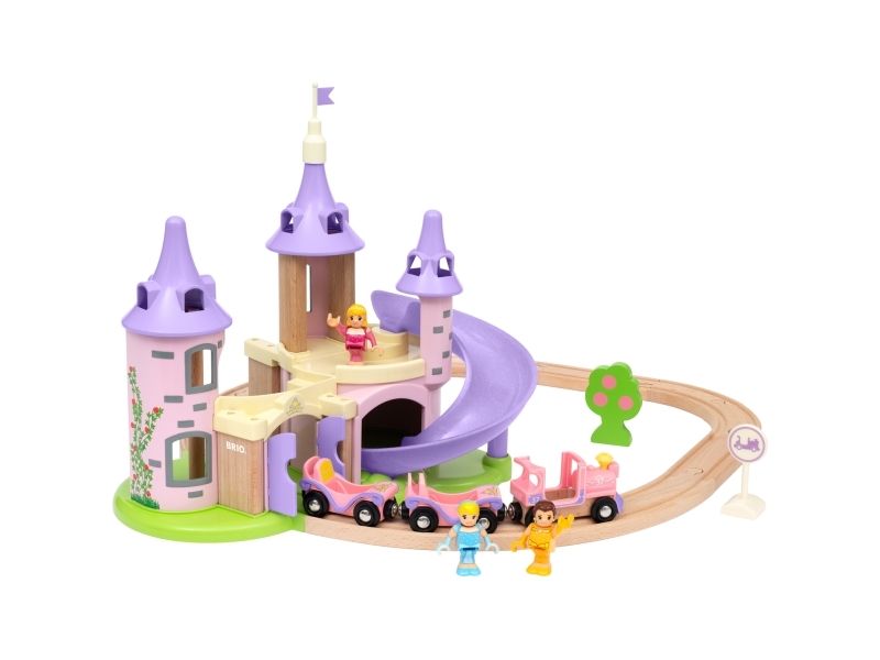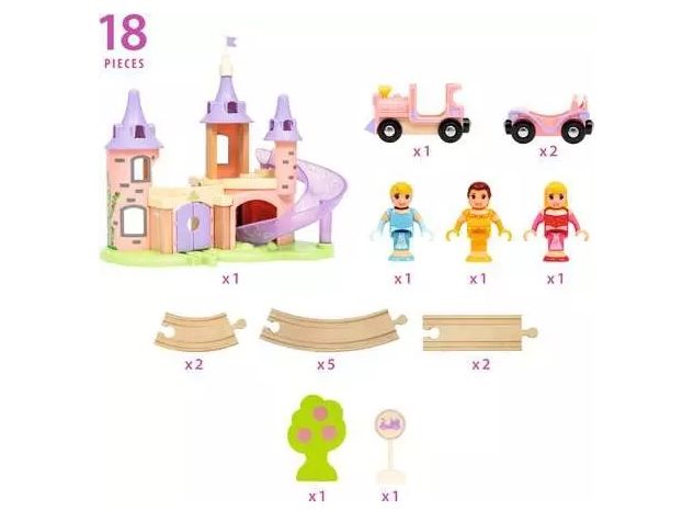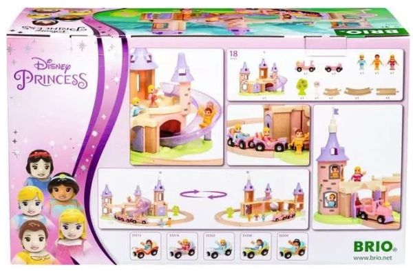 Bli med prinsessene Aurora, Belle og Cinderella til en eventyrverden med 33312 Disney Princess slott-sett. Dette sjarmerende lekesettet inkluderer et flott prinsesseslott, togskinner av tre, prinsesselokomotiv med vogner, tre Disney-prinsesser og tilbehør.