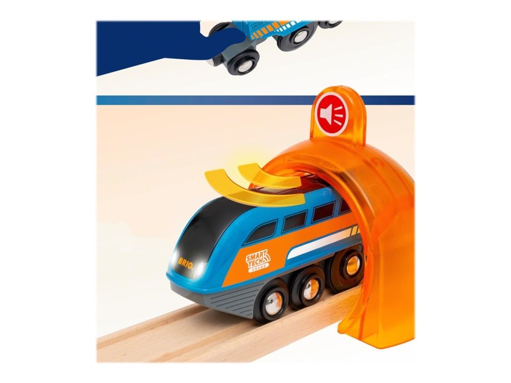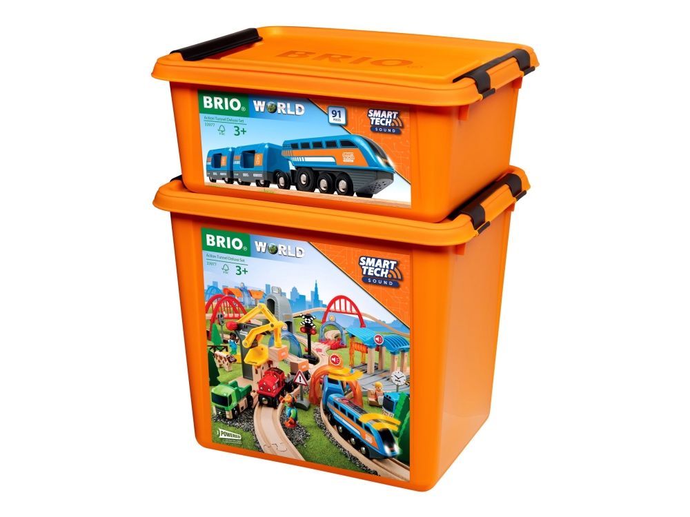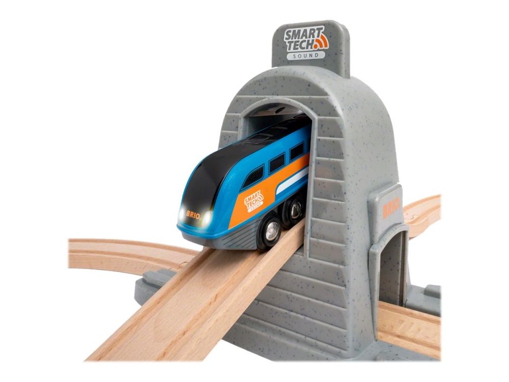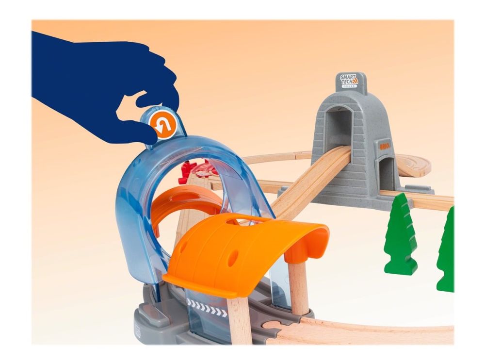 Hopp ombord i den optimale Smart Tech Sound-opplevelsen. 33977 Magiske tunneler luksussett inneholder 91-deler med jernbanemoro, inkludert høydepunkter fra interaktive Smart Tech Sound-serie. Reis rundt på denne store banen med tog, buss, lastebil og firhjuling, og utforsk alle områdene i BRIO World - fra fredelige bondegårder til den handlingsspekkede laste og losse-stasjonen. Så kan du gjøre dine eventyrlig togreiser enda mer spennende, med det utrolige Smart Tech Sound opptaker og avspiller-lokomotivet og magisk tunnel-tilbehør - hør stemmen din og andre programmerte lyder avspilles fra det batteridrevne lokomotivet når det kjører rundt på banen og interagerer med andre Smart Tech Sound-leker med lys, bevegelser og spennende lyder.
