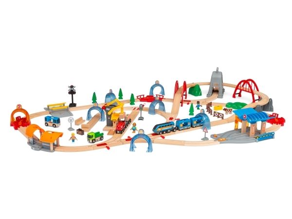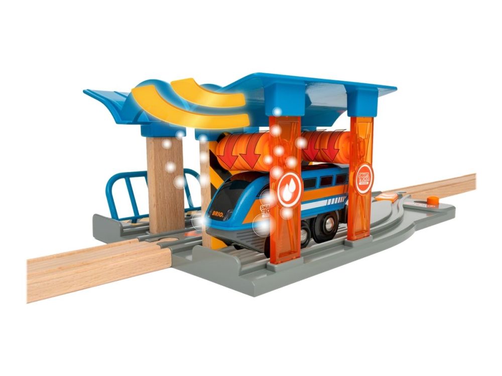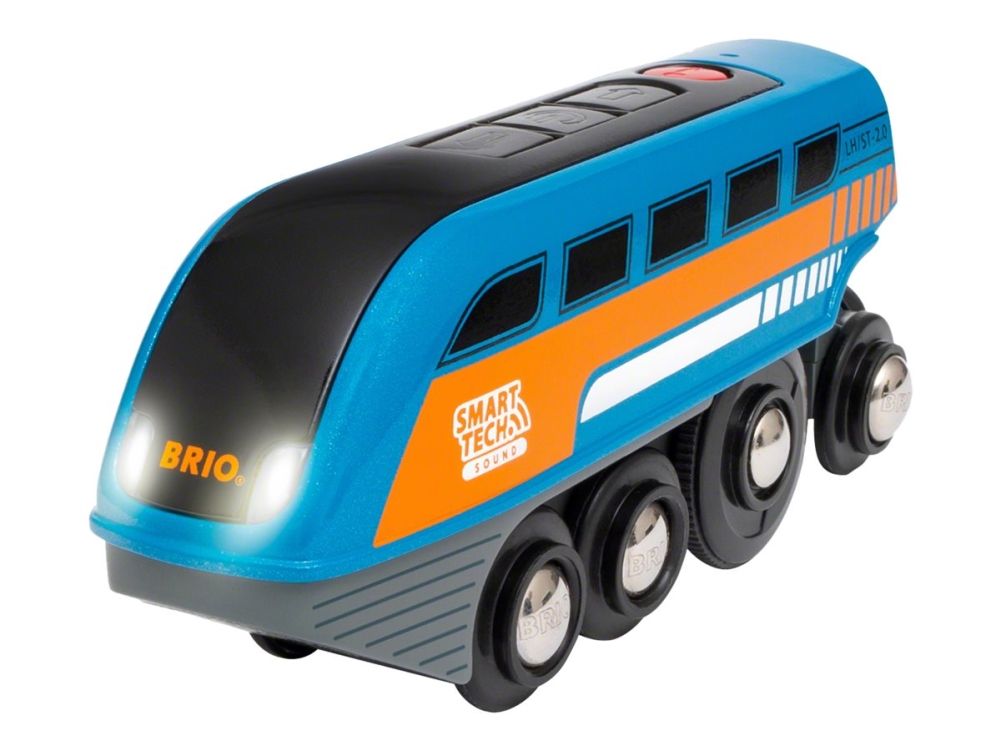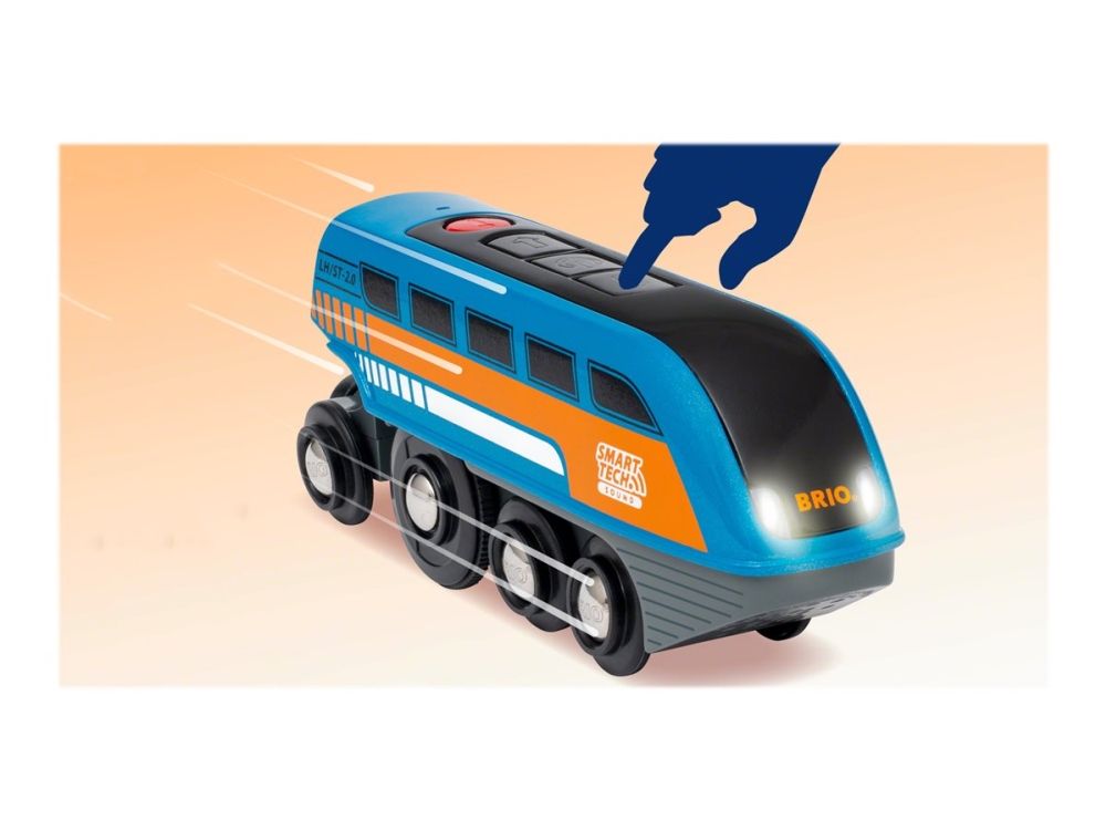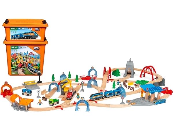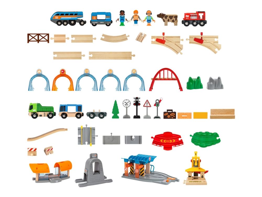 Hopp ombord i den optimale Smart Tech Sound-opplevelsen. 33977 Magiske tunneler luksussett inneholder 91-deler med jernbanemoro, inkludert høydepunkter fra interaktive Smart Tech Sound-serie. Reis rundt på denne store banen med tog, buss, lastebil og firhjuling, og utforsk alle områdene i BRIO World - fra fredelige bondegårder til den handlingsspekkede laste og losse-stasjonen. Så kan du gjøre dine eventyrlig togreiser enda mer spennende, med det utrolige Smart Tech Sound opptaker og avspiller-lokomotivet og magisk tunnel-tilbehør - hør stemmen din og andre programmerte lyder avspilles fra det batteridrevne lokomotivet når det kjører rundt på banen og interagerer med andre Smart Tech Sound-leker med lys, bevegelser og spennende lyder.