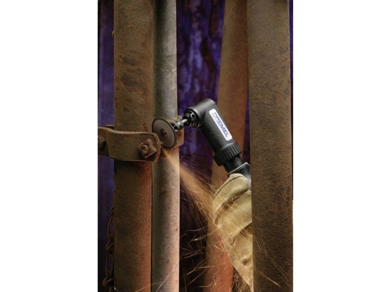Tilbehør beregnet på riktig vinkel for steder det er vanskelig å komme til. Kulelager og koniske tannhjul sørger for jevn og rolig drift, og øker levetiden. Koblingssystemet gjør det mulig å plassere forsatsen i 12 ulike retninger på verktøyet fra Dremel. Med hurtigkoblingen kan du koble til Dremel-verktøyet på et blunk.