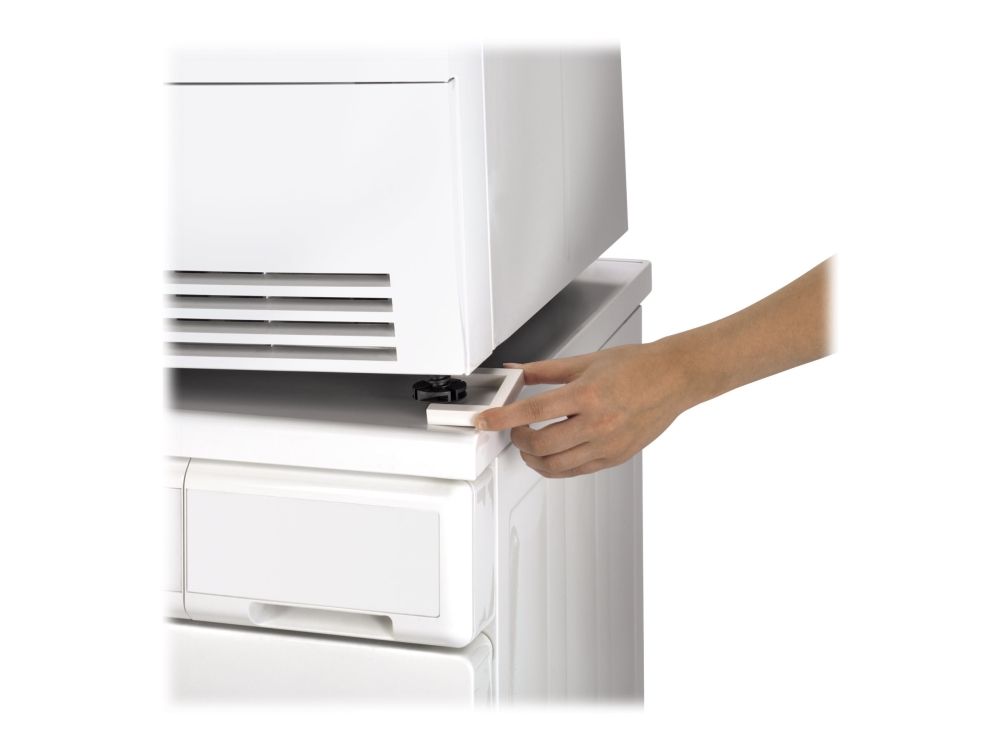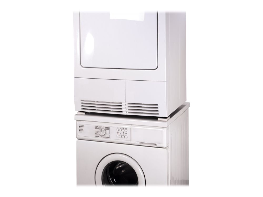 Xavax Fixing Plates for Dryers, for sticking on, set of 4 Fixing plates, prevent the dryer from getting out of place on the washing machine. When a washing machine and dryer are combined to form a column, the fixing plates are stuck under the feet of the dryer. In addition to the extremely strong adhesion, the dryer secures itself due to its weight as the fixings next to the border also have a bottom plate on which lies the dryer weight. The glue is insensitive to moisture and changes in temperature.