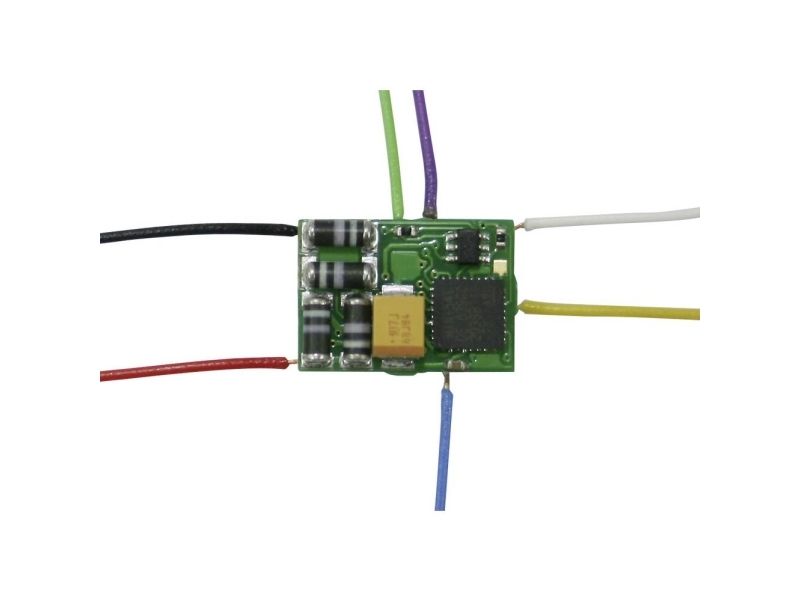 Lille funktionsdekoder med 4 udgange, for eksempel til kobling af retningsafhængig belysning og indvendig belysning af styrevogne.