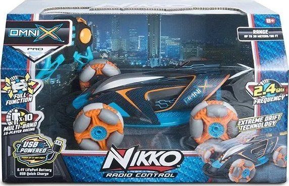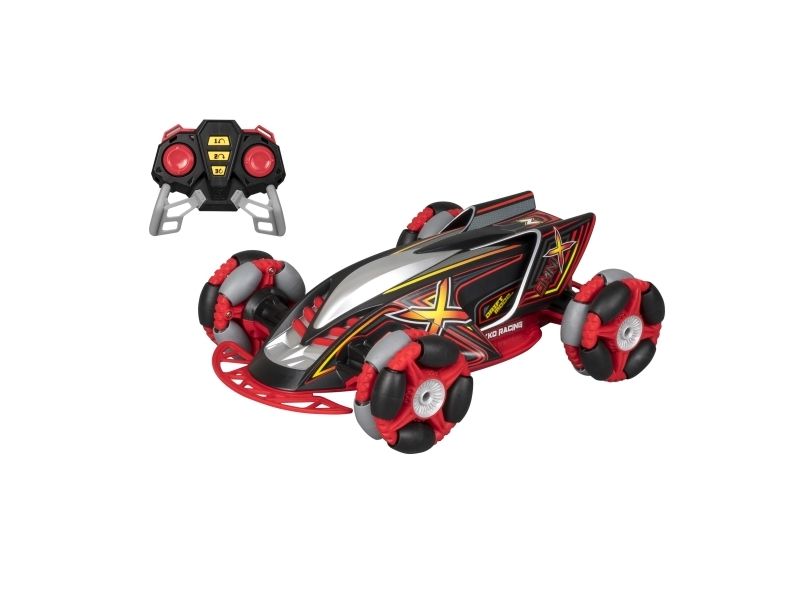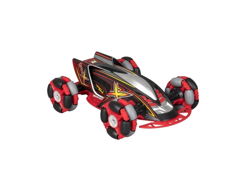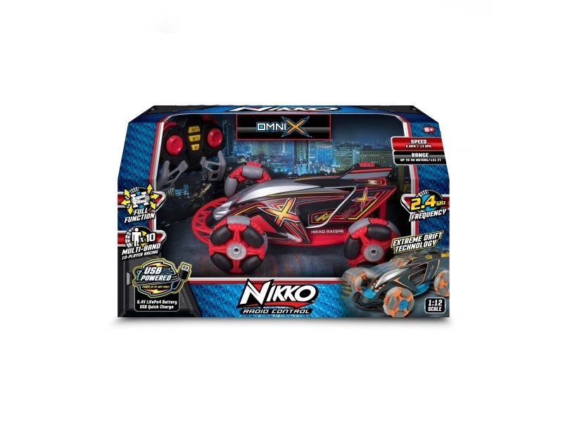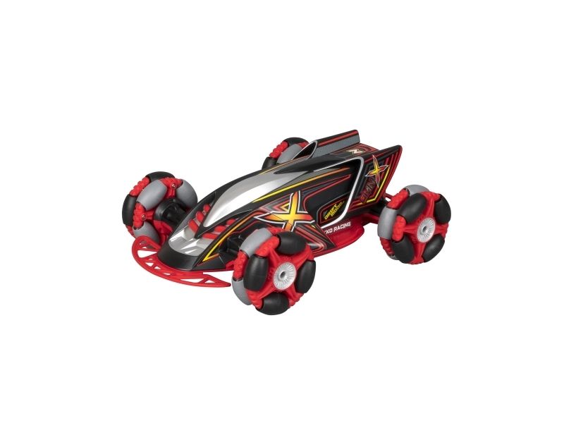 Vis dine "moves" med denne Omni-X racer. Med det specielle hjul-i-hjul design med 8 ruller kan du få Omni-X til at køre og drifte sidelæns som aldrig før. Omni-hjulteknologien lader dig være i kontrol, når der skal driftes, slides eller spinnes på kommando. Præcisionskontrollen på fjernbetjeningen giver dig mulighed for at styre dine stunts ved blot at trykke på en knap, og den indbyggede USB hurtigoplader holder dig kørende på forlangende. Fjernbetjeningen har fuld funktion med en rækkevidde op til på 40 m. Raceren når en tophastighed på 14 km i timen. 2,4GHz sender giver masser af sjov uden forstyrrelser for op til 10 kørere ad gangen. Kommer med 3 x AAA batterier til senderen og 6.4V LiFe-PO4 batteripakke og USB hurtigoplader. Fra 6 år.
