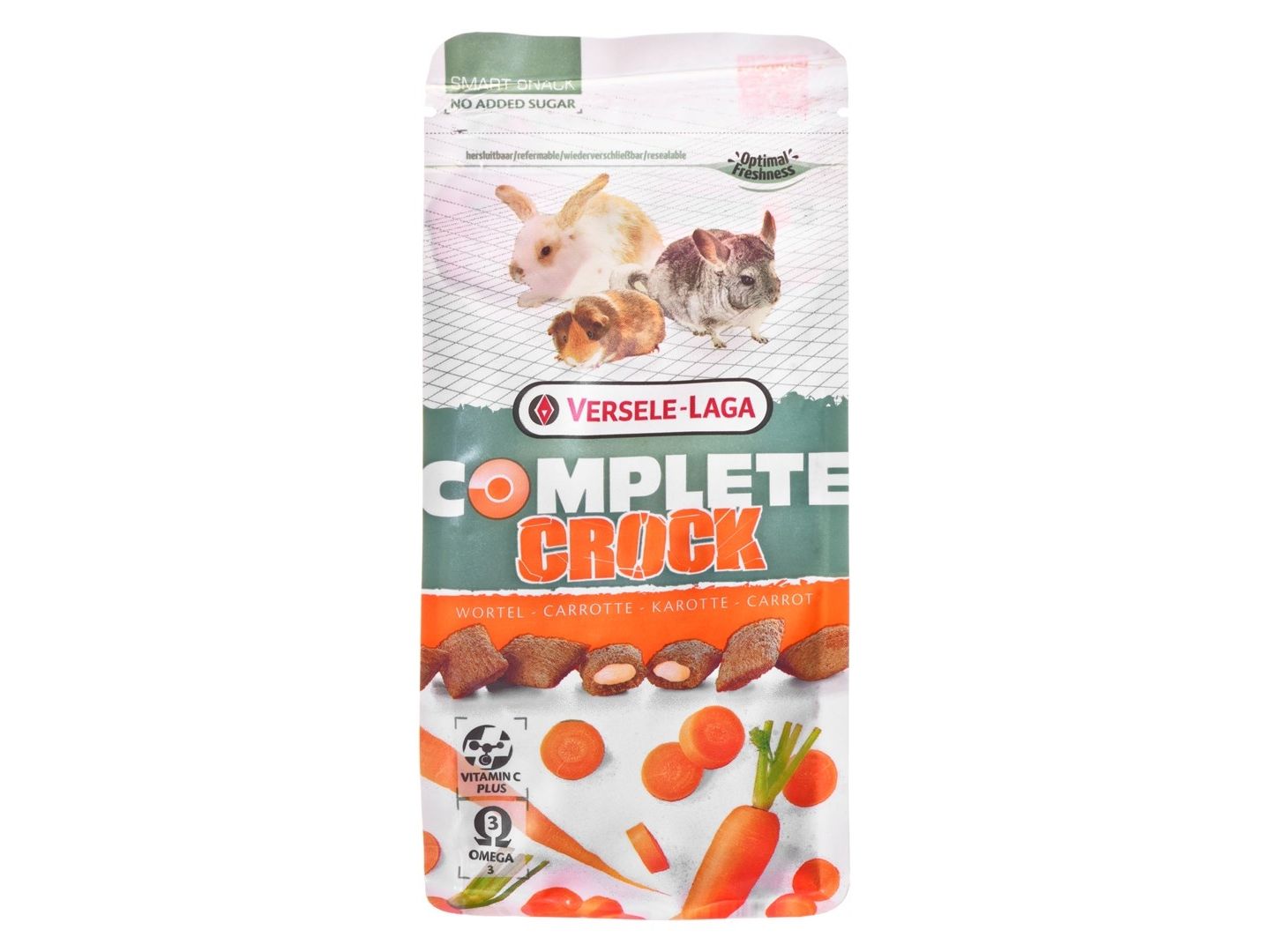 Versele-Laga Crock Carrot, Matbit, 50 g, Kanin, Omega-3, Vitamin A, Vitamin C, Vitamin D3, Vitamin E, Veske
