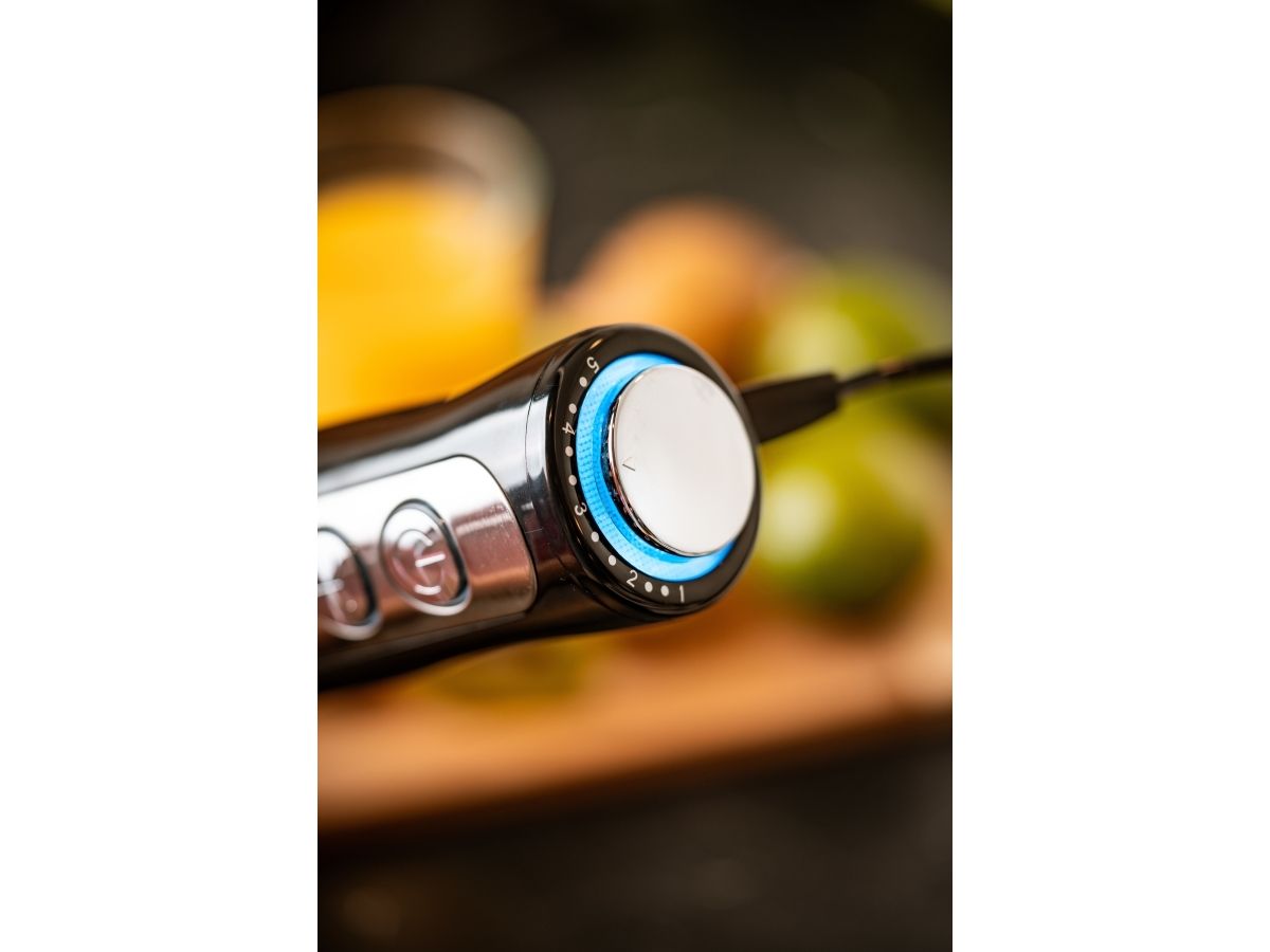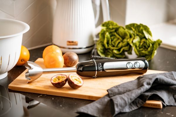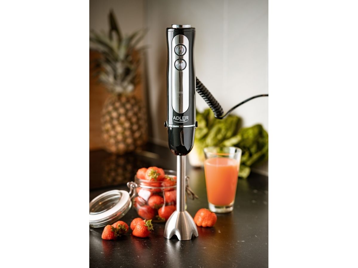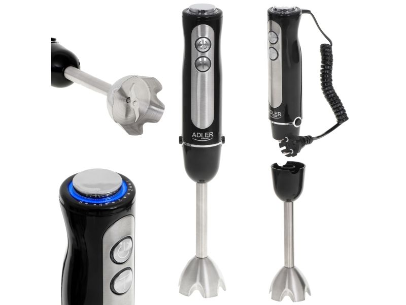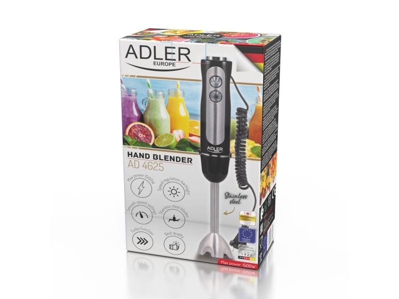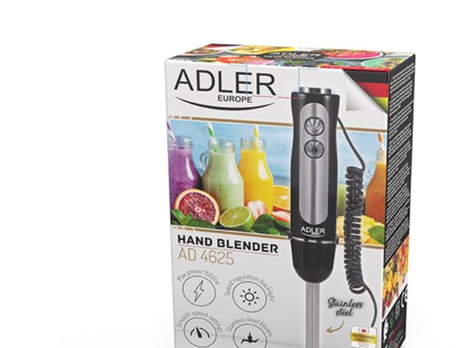 Hand blender AD 4625 It allows you to beat foam, grind, rub and easily prepare all kinds of mousses, cream soups, piree and other dishes requiring a similar consistency. The tip of the blender is made of durable stainless steel, which guarantees the possibility of long-term use. The device has 5 speed levels and Turbo functions.