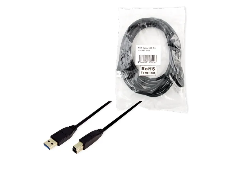 LogiLink 2m USB 3.0, 2 m, USB A, USB B, USB 3.2 Gen 1 (3.1 Gen 1), Hankjønn/hankjønn, Sort