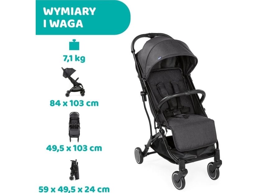 Chicco Trolley Me. Type: Lightweight stroller, Number of seats: 1 seat(s), Product colour: Black, Grey. Width: 495 mm, Depth: 840 mm, Height: 1030 mm