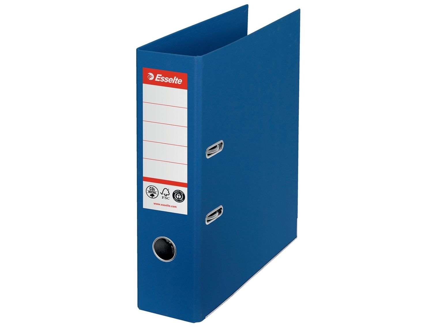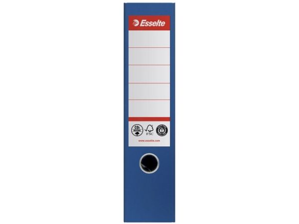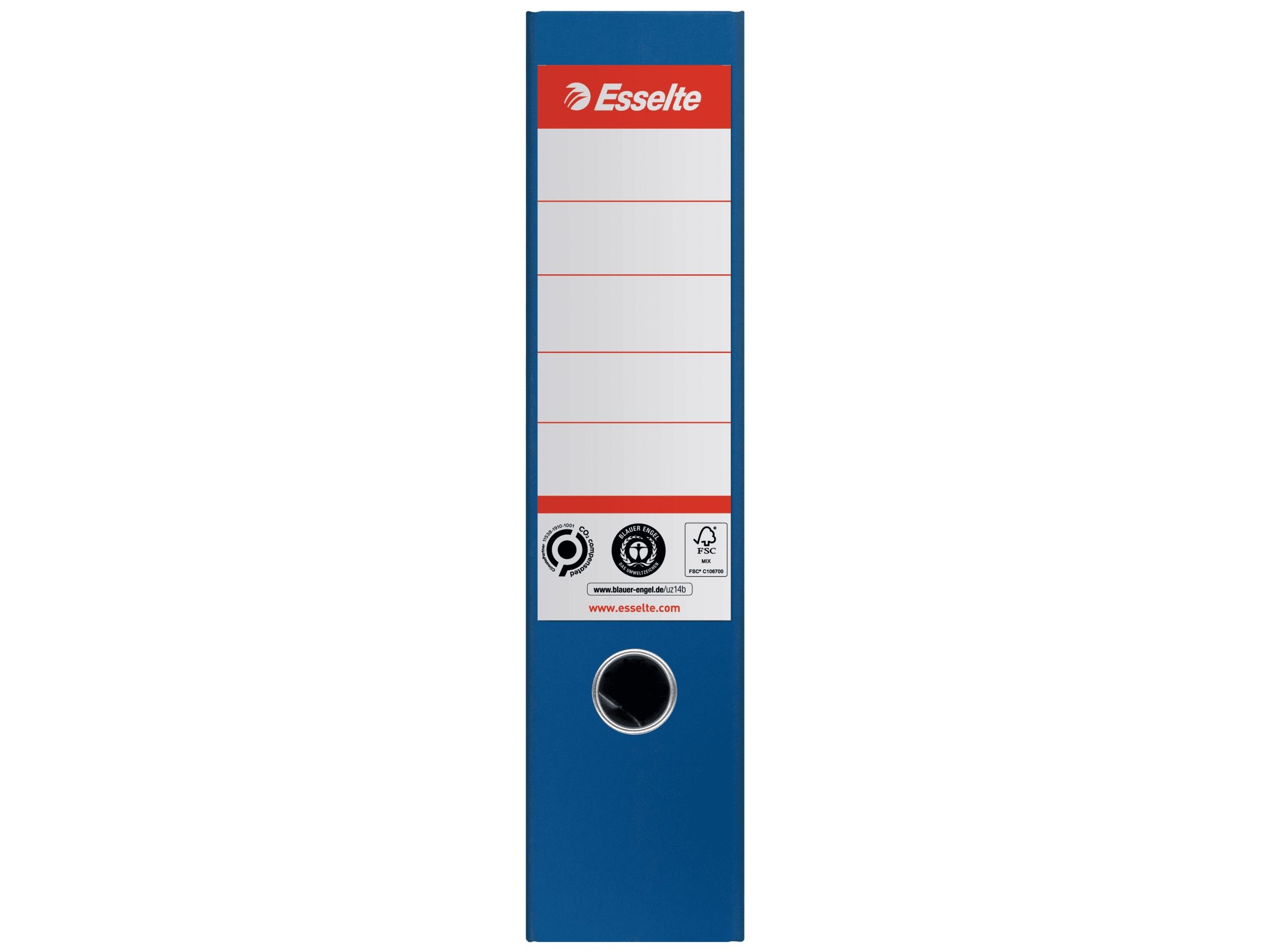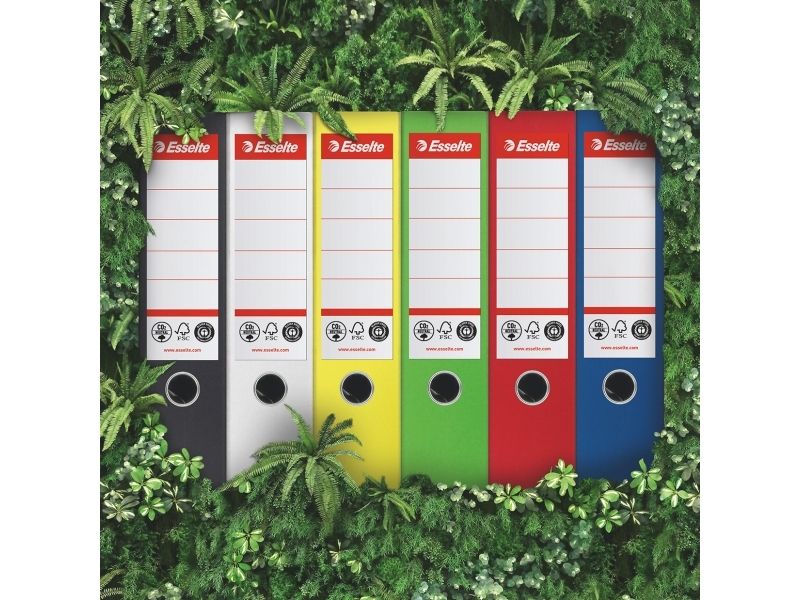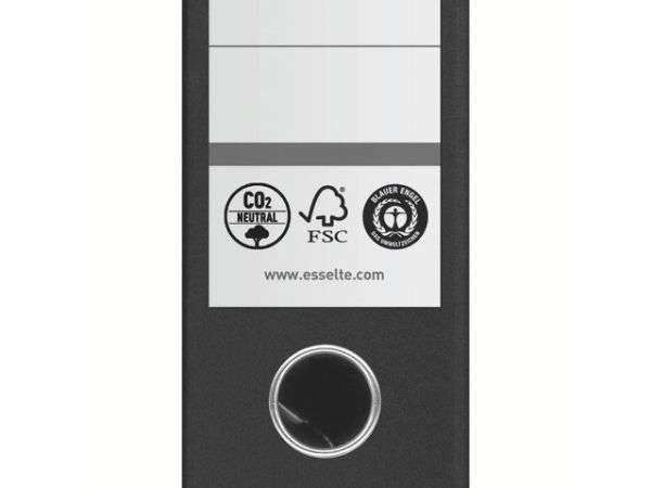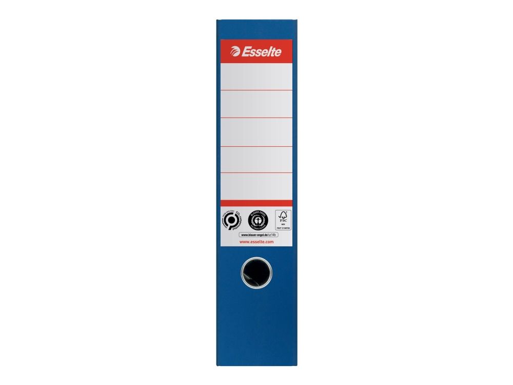 The Esselte lever arch file combines functionality with sustainability, making it an ideal choice for filing and storage needs. Crafted from recycled cardboard, this lever binder supports the A4 format and has a spine width of 72 mm, offering a capacity of up to 500 sheets. The self-adhesive spine label ensures easy identification, while reinforced corners and a thumbhole with metal lining provide durability and accessibility for frequent use. Certified by FSC and Blue Angel, this product meets high environmental standards and is recyclable, aligning with eco-conscious practices.