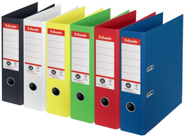 Esselte - Hevarmbuefil - bokryggbredde: 75 mm - for A4 (210 x 297 mm) - kapasitet: 500 ark - gul
