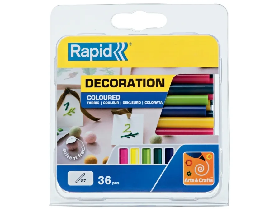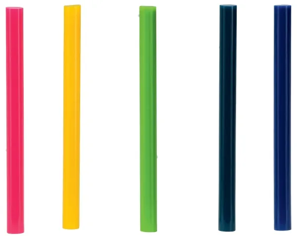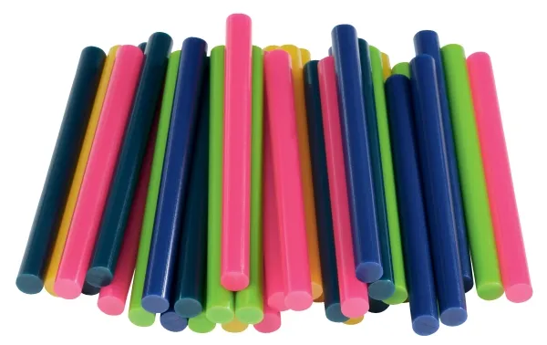 Disse 7 mm farvet lim stave er perfekte til en lang række dekorative og kunst opgaver. Lim stave kommer i farverne. Cerise, gul, lysegrøn, mørkegrøn, militærblå. Pakken indeholder 36 stk lim stave.