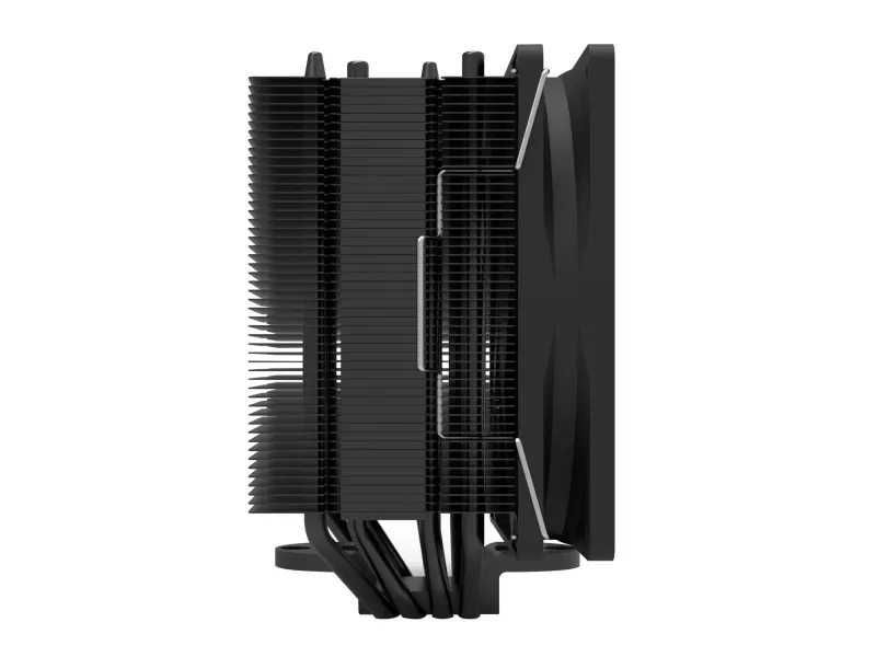 Optimally designed aluminum fins disperse heat away from the CPU via 5 heatpipes, while switching noise free, high capacity 120mm fan quickly cools the heatsink for stable operation of high performance CPUs.