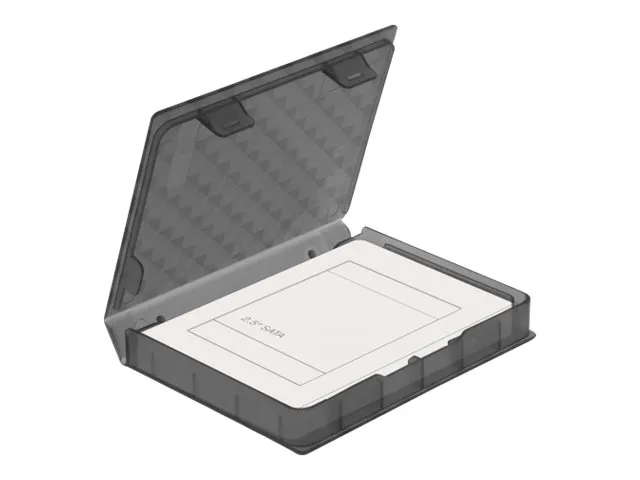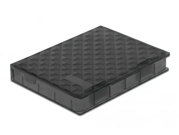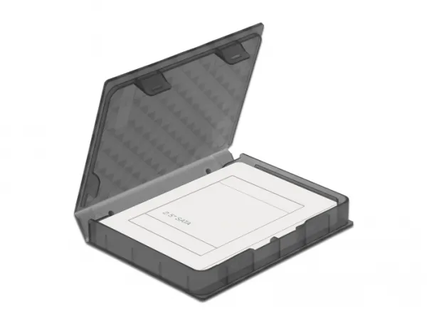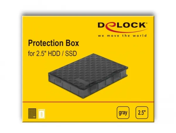 This handy box by Delock can be used to store and transport 2.5? HDD or SSD. The hard drive or SSD is protected from damage and remains free of dirt and dust. There is an opening for the SATA connector built in, so that the hard drive or SSD can be connected to a computer while remaining in the box.