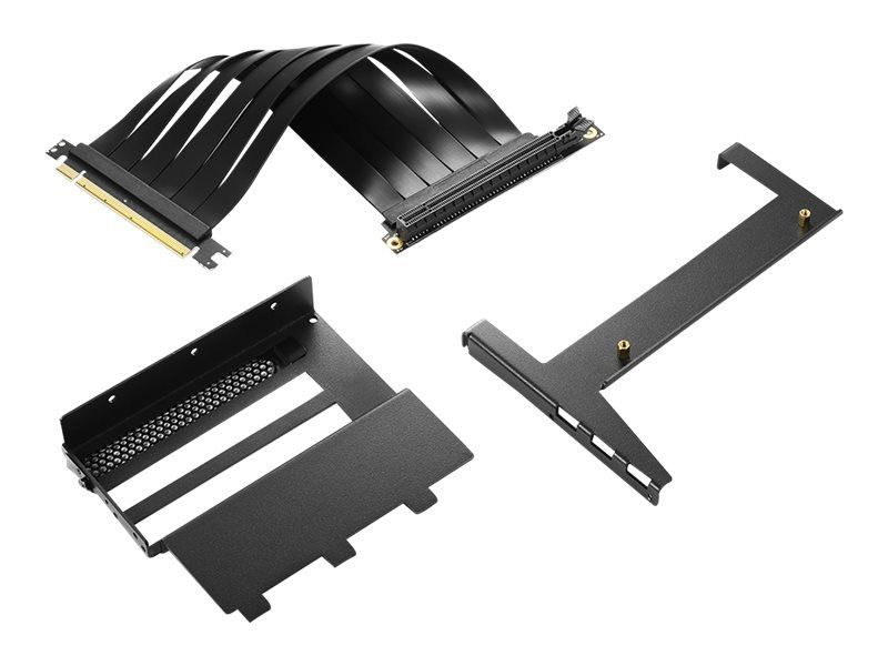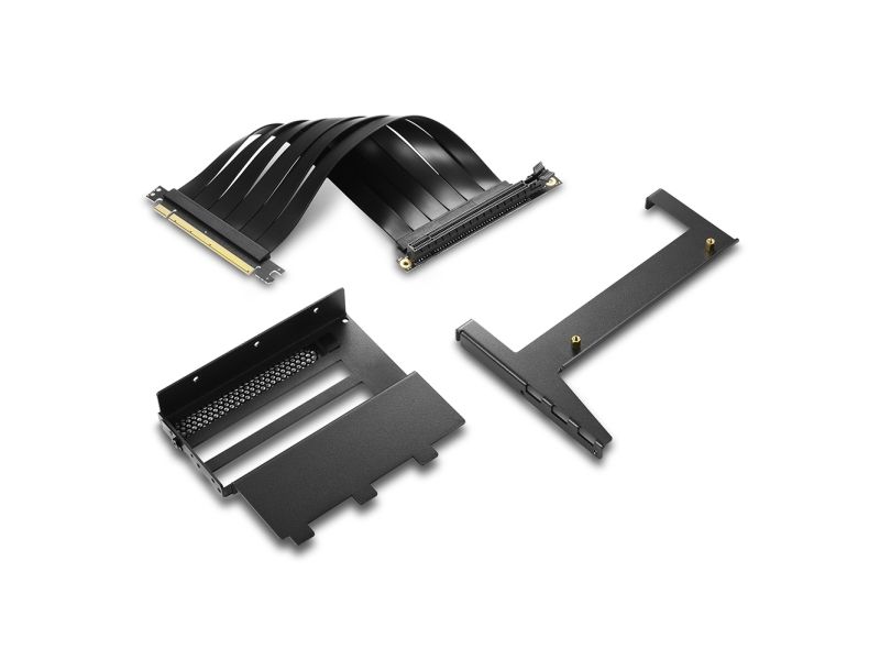 For its REV300 PC case, Sharkoon offers the Angled Graphics Card Kit as an optional addition. With this, an RGB graphics card can be integrated parallel to the mainboard. Due to the vertical mounting, the illumination of the graphics card can be strikingly displayed behind the glass side panel. The vertical installation also has the advantage of an even better airflow within the PC case. The kit, along with the riser cable, can be attached to the mainboard tray without any problems.