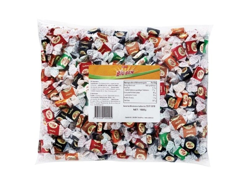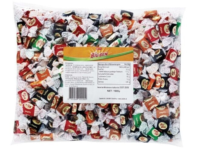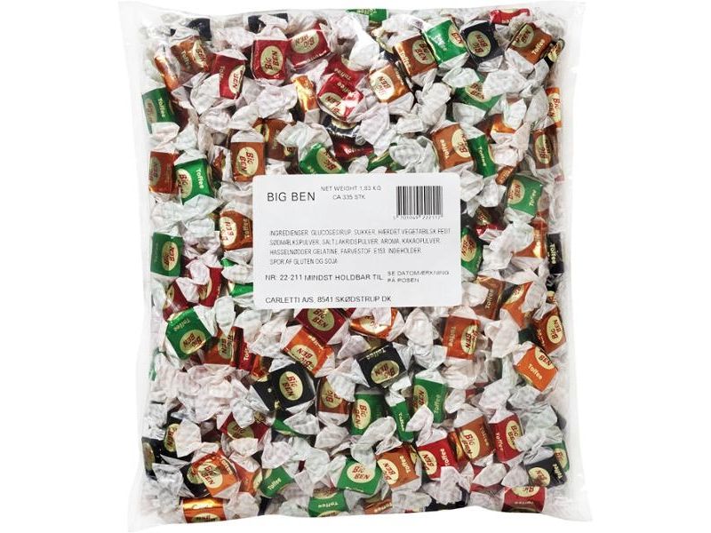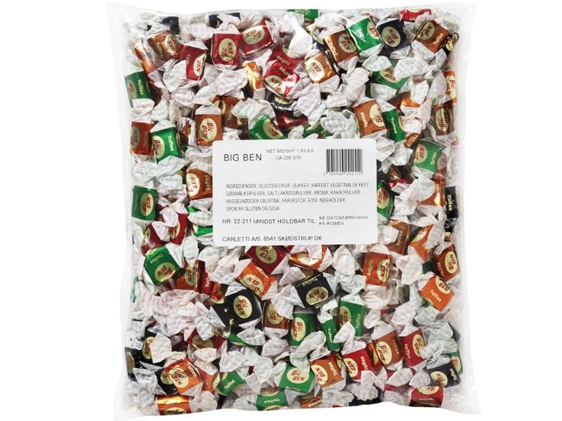 Karameller, Big Ben. 1,5 kg flødekarameller, med flere smagsvarianter.