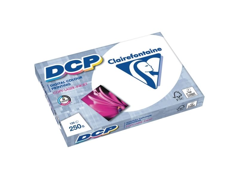STATEN OG KOMMUNERNES INDKØBSSERVICE A/S Papir til farveprint, Clairefontaine DCP Skab skønne farveprints med papir til farveprint. Lad dine print komme bedst muligt til live med papir, der er lavet til at sikre klare, skarpe farver. Papiret er i A3. Farven er hvid. Hvidhedsgraden er høj og på 170 hvidhed (CIE). Overfladen er satin og har en gennemsigtighed på op til 99 %. Det er et kraftigt papir, som har mange anvendelsesmuligheder, da kvaliteten er god og gramvægten er 250 g/m2. Det har et abso[...]
