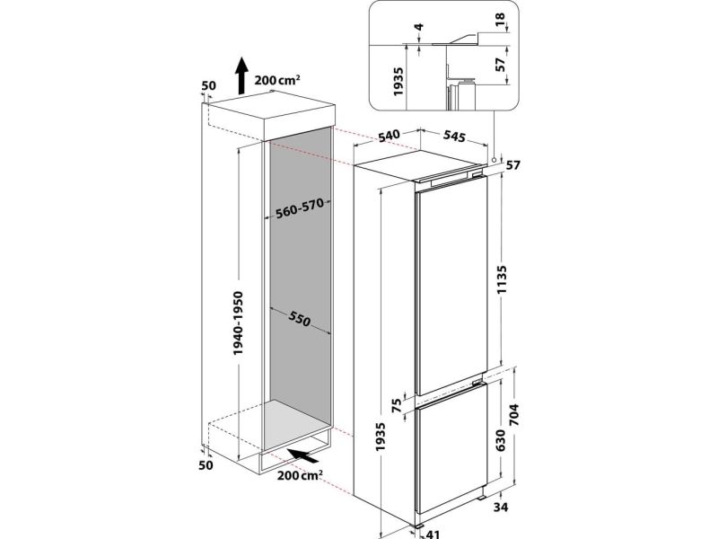 1 x grønnsaksskuff - Fresh Box 1 x dørlager for flasker 1 x melkeproduktrom 5 x hylle - glass med profil 4 x hylle - justerbar