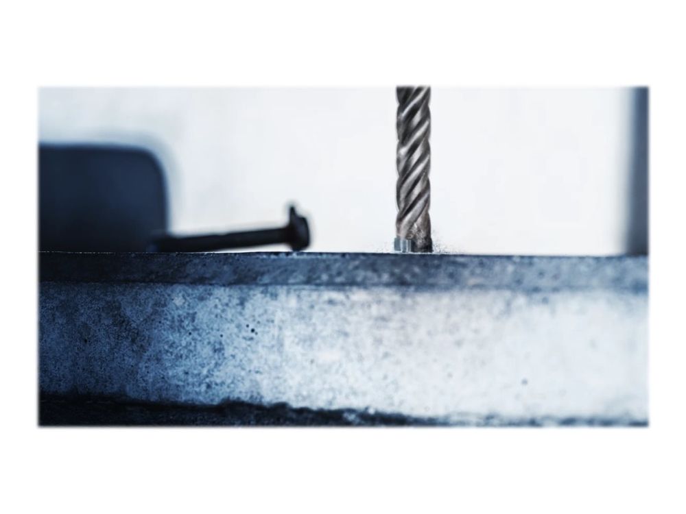 Drilling through reinforced concrete is a tough job, and it has traditionally taken its toll on drill bits. Regular two-cutter bits get stuck in rebar and they eventually break. The Full Carbide Head on the EXPERT SDS plus-7X is an advanced 4-cutter design made from a single piece of the toughest metal: It doesn't jam and presents no weakness on impact.