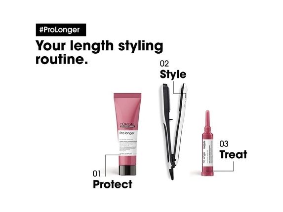 Powered by FILLER-A100 and Amino Acid, the Serie Expert Pro Longer Renewing Cream for Lengths & Ends brings a lightweight texture to long hair suffering from thinned ends, helping renew the fiber instantly and protects the hair from heat up to 230°C/450°F.