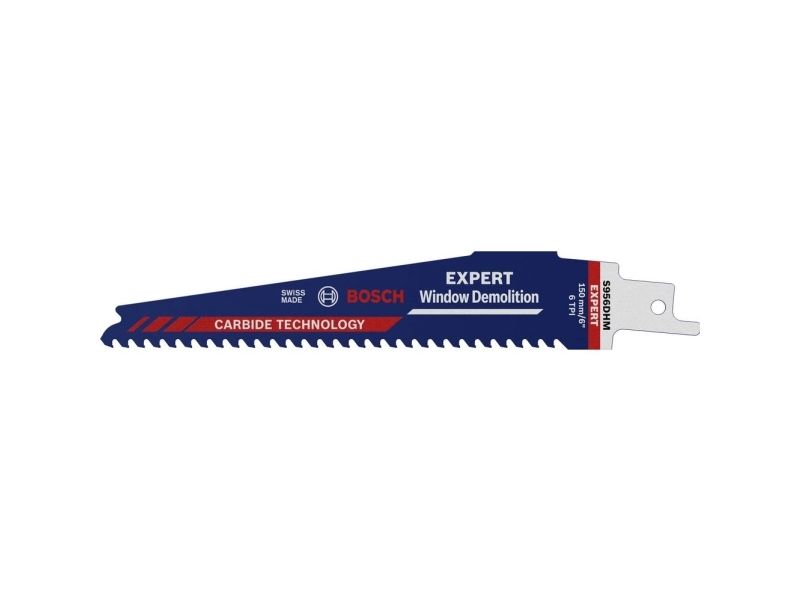 Holder op til 50 gange længere end et bimetal-blad i robuste materialer - tilskæring af vinduer til udskiftning eller under nedrivningsarbejder har altid været en vanskelig opgave, når flere vinduesmaterialer som stålforstærket træ eller plast skal saves. Da der stadig oftere anvendes stål i stål med høj styrke til fikseringsskruer, kunne de gamle bimetal-blade ikke længere trænge igennem en enkelt skrue. Bosch Expert ‘Window Demolition’ bajonetsavklinge er et ark til moderne vinduesinddeling. Takket være Bosch Carbide Technology har tænder, som kommer til de hårdeste og stærkeste fikseringsskruer - og holder dem til. De korte spidser, der forynder sig, og de sideværts indstillede karbider-tænder er alle designet til særlige opgaver: Bladet er vores specialist i vinduer og døre - uanset om det er i træ, plast eller kompositmateriale. Ved at kombinere lang levetid, effektivitet og mulighed for at udføre vindues- eller dørbrætarbejde er Bosch Expert ‘Window demolition’ bajonetsavklinge meget populært hos vinduesbyggere. Det modstår endda kontakten med murværk, mørtel og gips. Passer til alle sabelsave med S-skaft.