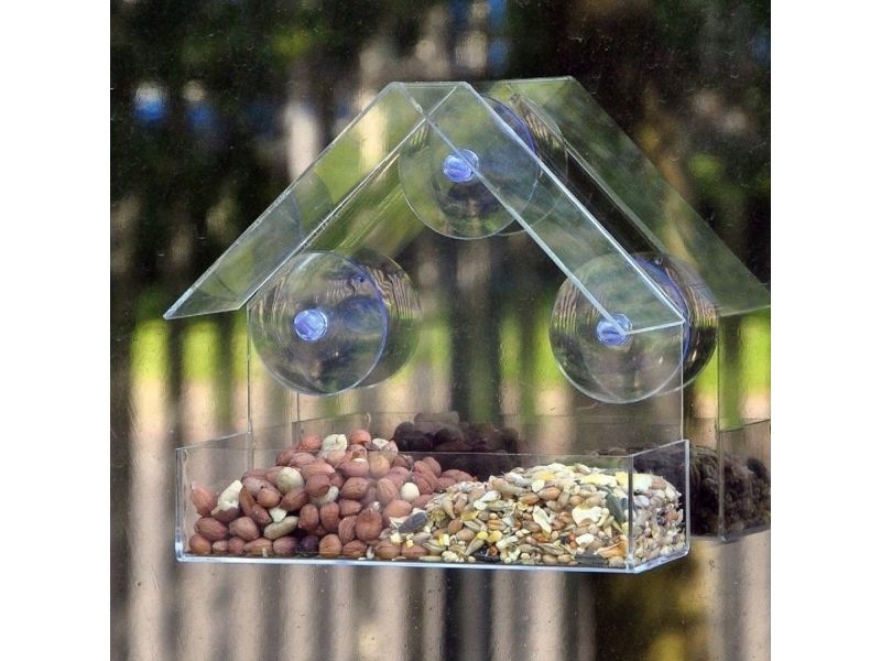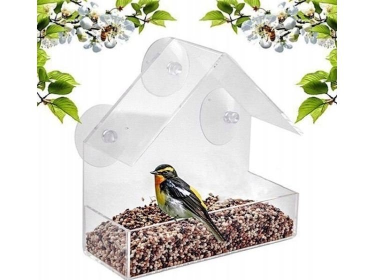 Garden&Fun fuglemater til vindu/rute, gjennomsiktig akryl, 14,8x6,7x15,5 cm med sugekopper