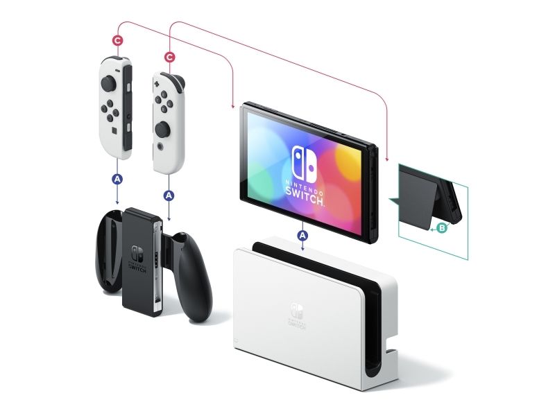 Nintendo Switch (OLED model) har en tilsvarende størrelse som den klassiske Nintendo Switch-konsollen, men med en større 7-tommers OLED-skjerm. OLED-skjermen sørger for fantastisk levende farger og enda sterkere kontrast! Nintendo Switch (OLED model) gjør det også enklere å spille med konsollen i bordmodus, hvor du nå kan justere vinkelen på konsollen med den større og forbedrede ryggstøtten. I tillegg kommer den nye modellen med en helt ny dokkingstasjon som inkluderer en LAN-port. Du får hele 64 GB med internlagring, og høyttalerne er oppgradert. Den beste spillopplevelsen venter deg på Nintendo Switch (OLED model), uansett om du er på farten eller om du plugger maskinen i dokkingstasjonen og tar av Joy-Con-kontrollerne.