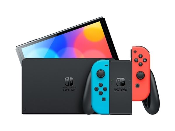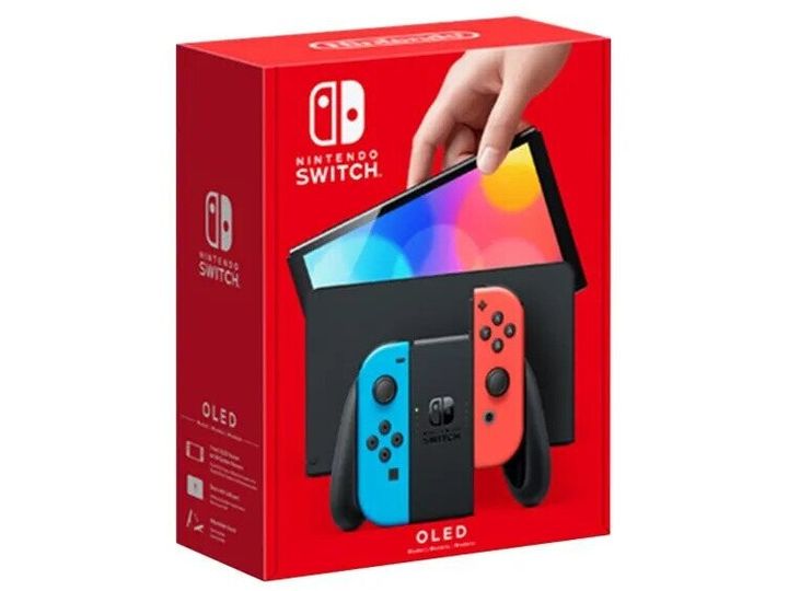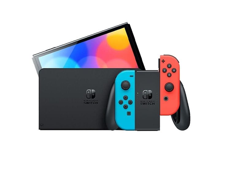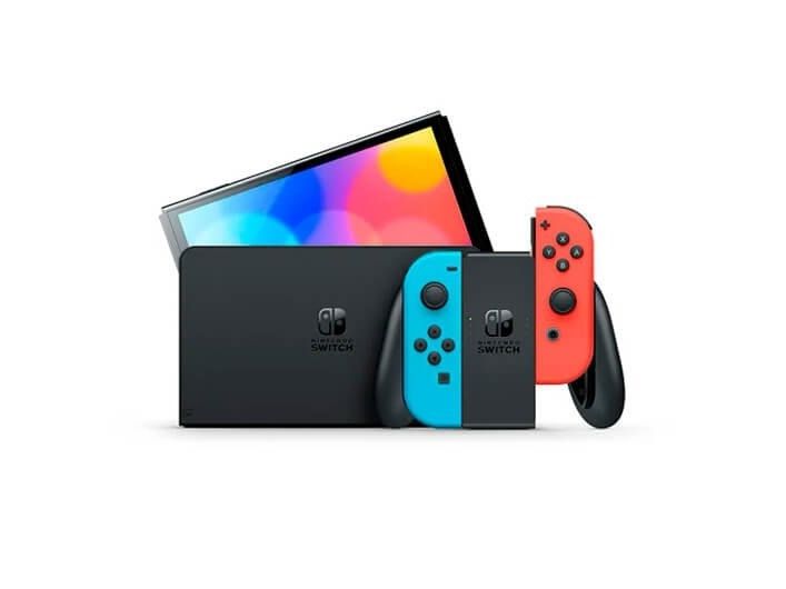 Nintendo Switch OLED - Spillkonsoll - svart, neonrød, neonblå