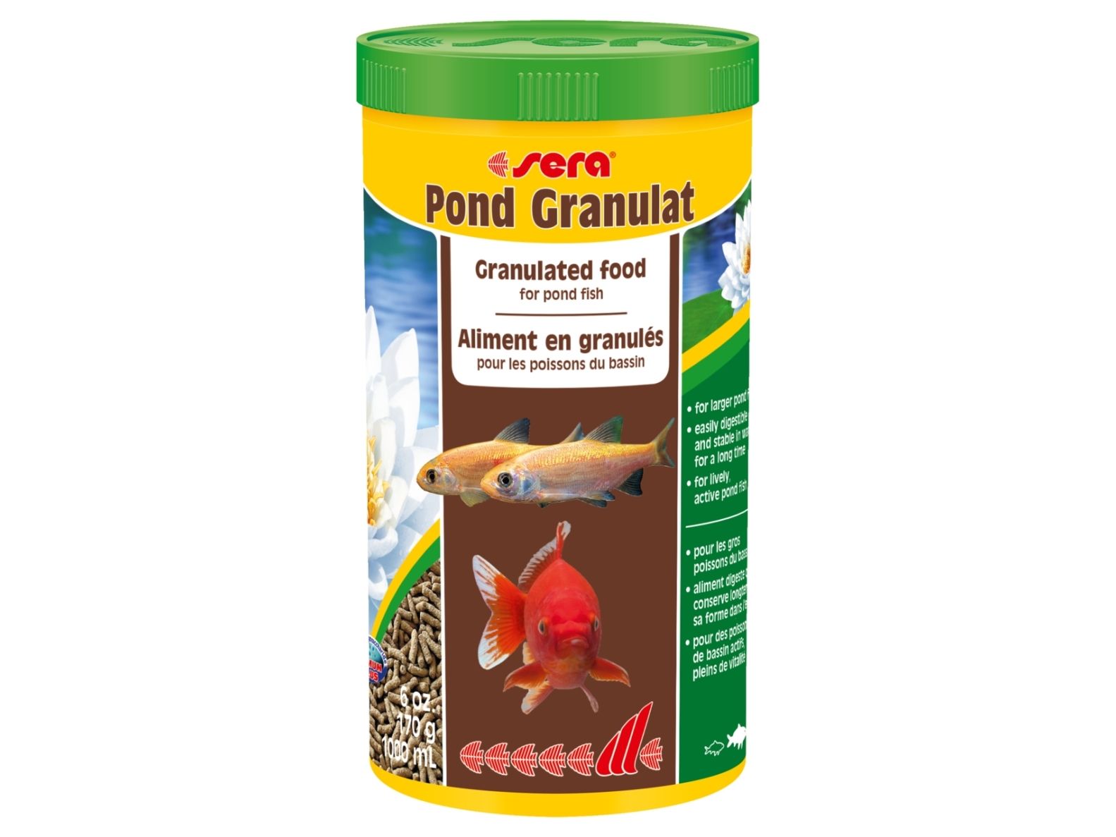 sera Pond Granulat is the staple food consisting of carefully processed granules for all bigger pond fish such as Koi and big goldfish.