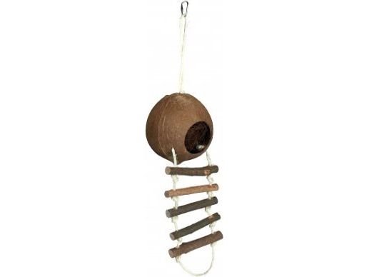 Kokosnødhuset til hamster er et hyggeligt og hængende tilflugtssted, med naturlige kokosfibre indeni. Den indbyggede komfort skaber et ideelt sted for hvile og leg. Med sin hængende design tilbyder huset en ekstra dimension af berigelse og pladsudnyttelse i buret for din hamster.
