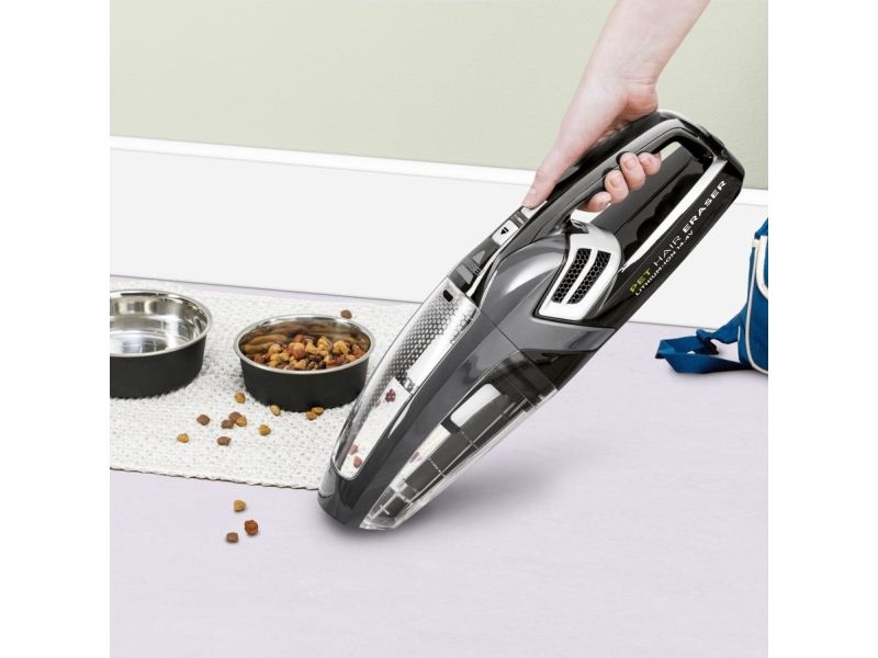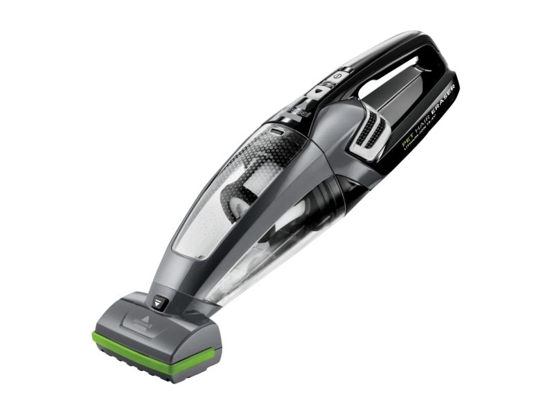Clean wherever your pet goes with the BISSELL Pet Hair Eraser. This lightweight and cordless handheld device allows you to clean up pet hair and dirt that collects on your furniture, in your carpet, in your car or wherever your furry friends play. Thanks to its cordless feature and compact size you can reach every corner of your house with ease. Enjoy up to 18 minutes of cordless freedom. The detachable motorized brush helps capture more embedded pet hair and dirt, providing a deeper clean. The included pet tools, crevice tool and upholstery tool, will help you clean thoroughly, allowing you to ultimately get rid of hair in different surfaces. In addition, the triple-level filtration helps improve cleaning performance.?