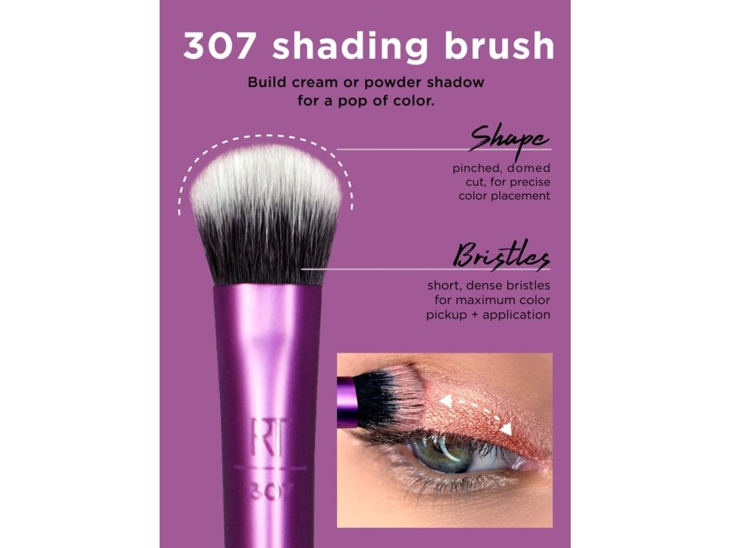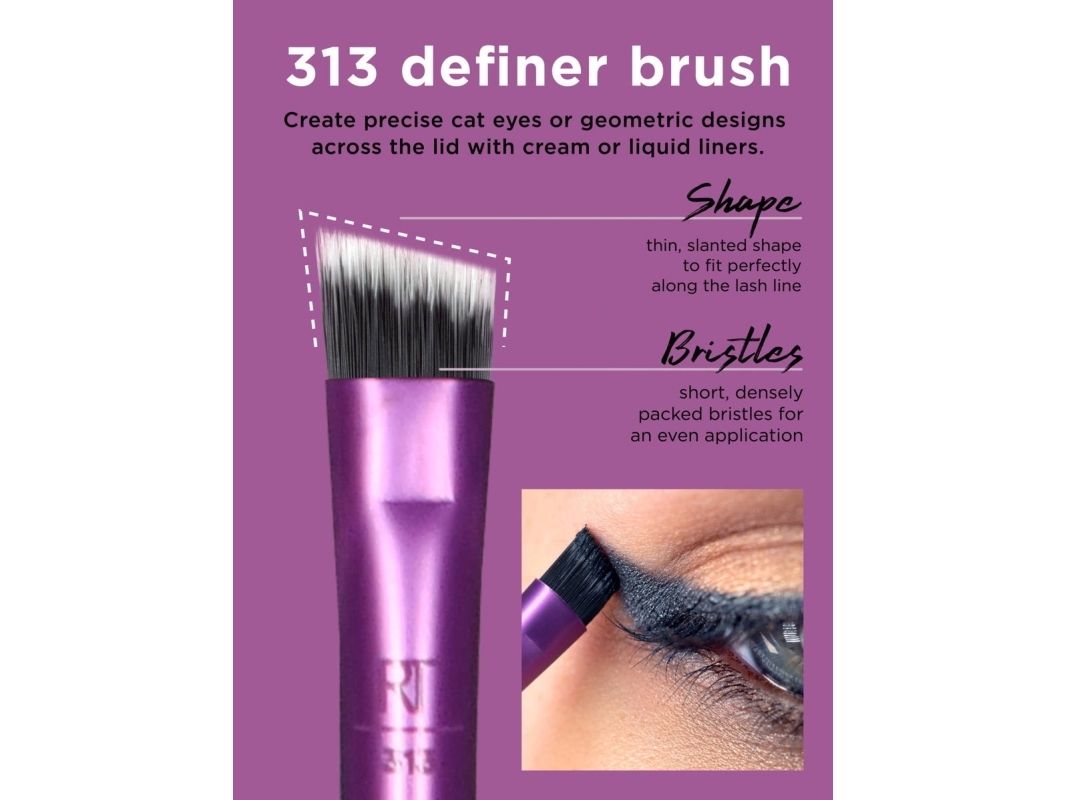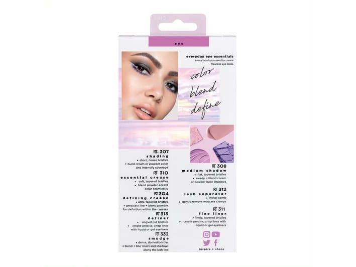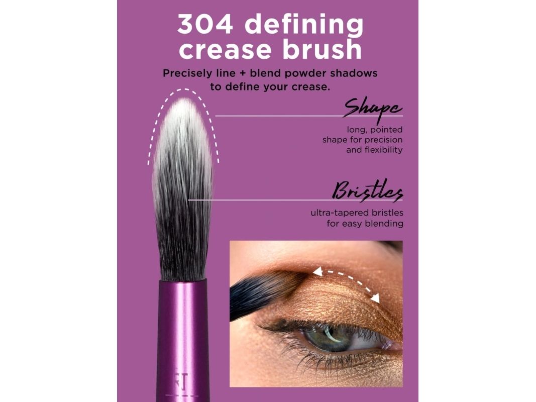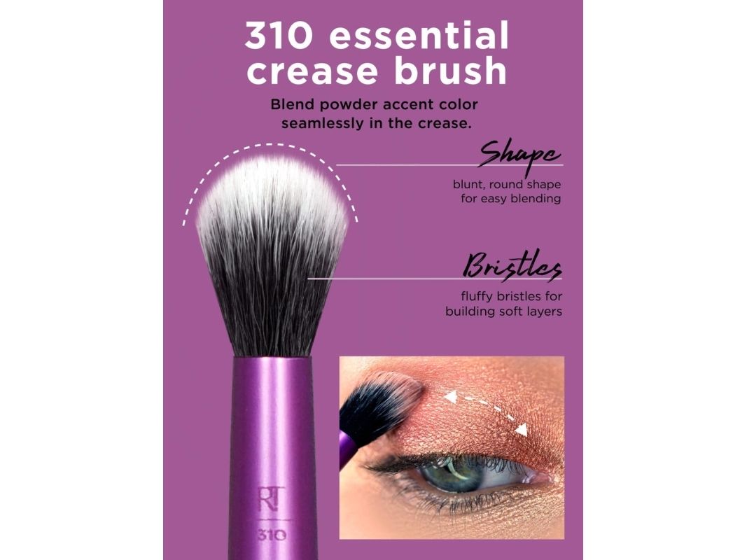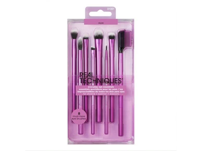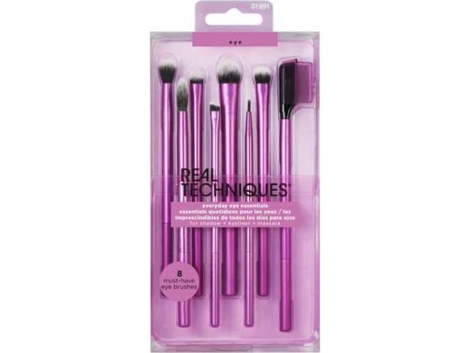 Our Real Techniques Everyday Eye Essentials Makeup Brush Set has every brush you need to create flawless eye looks from natural to glam: Shading Brush: build cream or powder color shades and intensify coverage. Essential Crease Brush: blend powder accent colors seamlessly within the creases of the eyelid. Defining Crease Brush: precisely lines + blends powder shadow for definition within the creases. Definer Brush: creates straight cat eyes and designs across the lid. Smudge Brush: blend and blur eyeliner and shadows along the lash line. Medium Shadow Brush: sweep and blend powder or cream base shadows. Lash Separator: helps separate mascara clumps. Fine Liner Brush: creates crisp lines of liquid or gel eyeliner.Real Techniques 1991. Type: Eye makeup brushes set, Brush head shape: Assorted, Bristle type: Assorted. Quantity per pack: 8 pc(s)