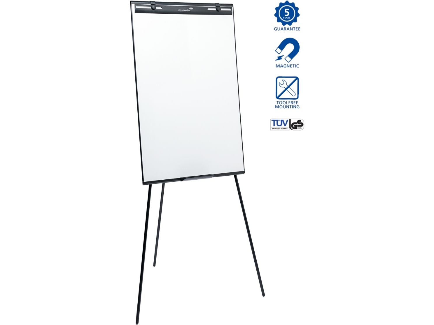 Attach a flipchart paper pad or use as a whiteboard. Fits all standard paper pad formats. Height-adjustable: can easily be set at the ideal writing level. Third leg provides extra stability. Easy mounting: no tools needed. 5 year guarantee on the perfect writability and wipeability of the board surface when used in combination with Legamaster accessories.